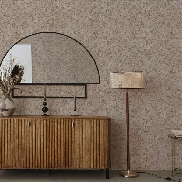 Tapete Steinrelief mit floralen Schnörkeln, Vintage-Beige Nr. a00784