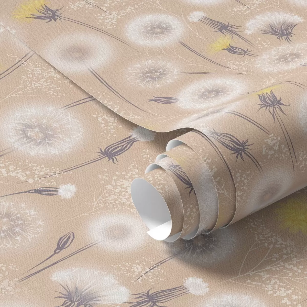 Tapete Löwenzahn und Samen auf pfirsichfarbenem Hintergrund Nr. a00790v1