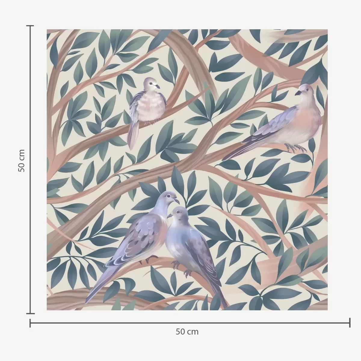 Tapete Tauben zwischen Zweigen und Blättern in sanften Pastelltönen Nr. a00796