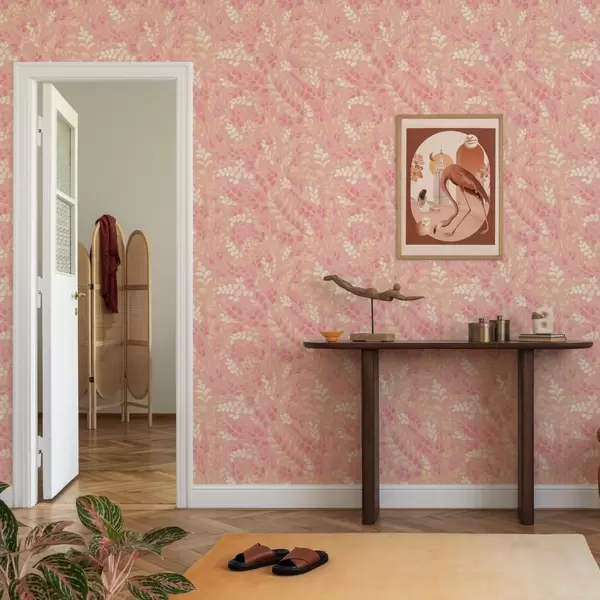 Tapete Zartes rosa-pfirsichfarbenes Laub mit einem sanften Farbschimmer Nr. a00799
