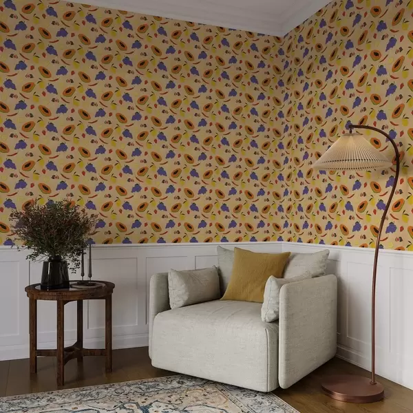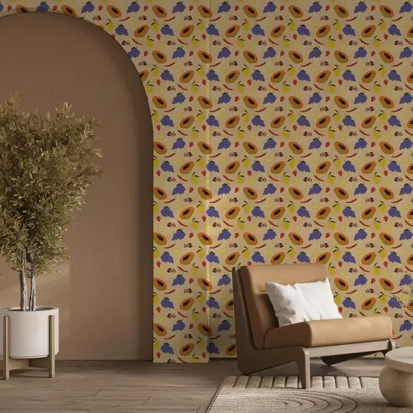 Tapete Papaya, Zitrusfrüchte und Beeren auf einem satten, warmen Hintergrund Nr. a00803v1