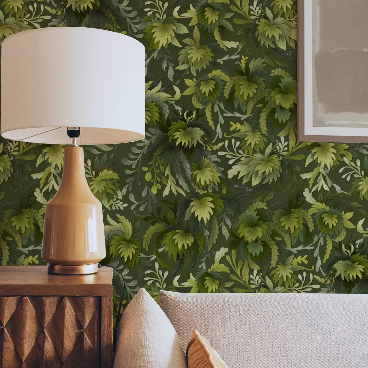 Tapete Dichtes grünes Laub auf dunkelgrünem Hintergrund Nr. a00805
