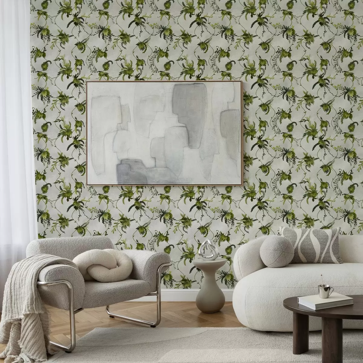 Tapete Kletternde Äste mit Blättern vor hellem Hintergrund Nr. a00806