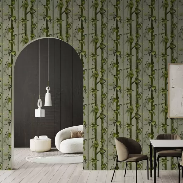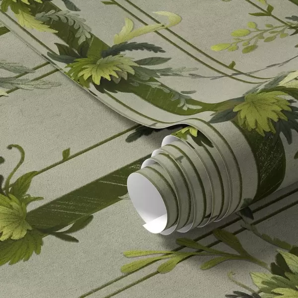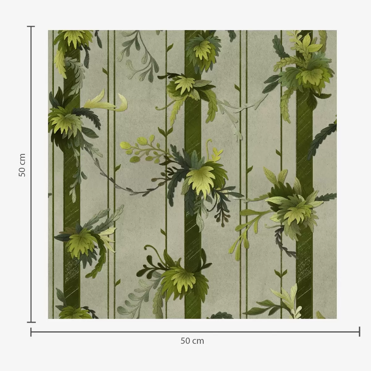 Tapete Grüne Blätter in vertikalen Streifen auf grauem Hintergrund Nr. a00807v1