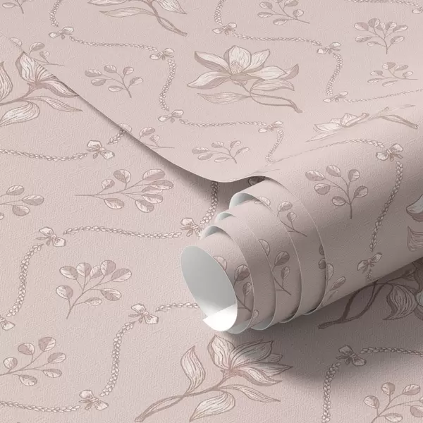 Tapete Kleine Blumen und Bänder in zarten Rosa- und Beigetönen Nr. a00808