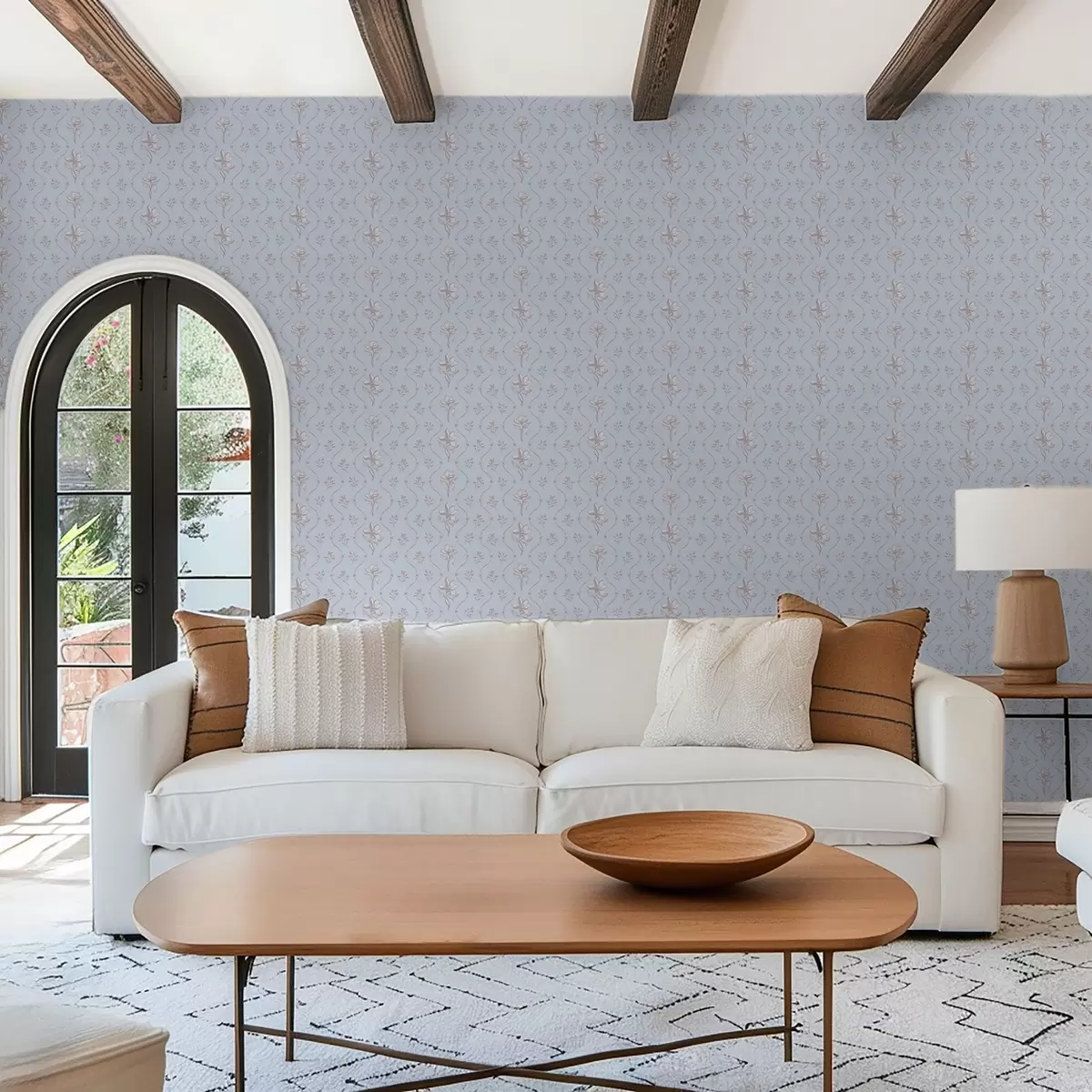 Tapete Kleine Blumen und Bänder in hellblauen Farbtönen Nr. a00808v1