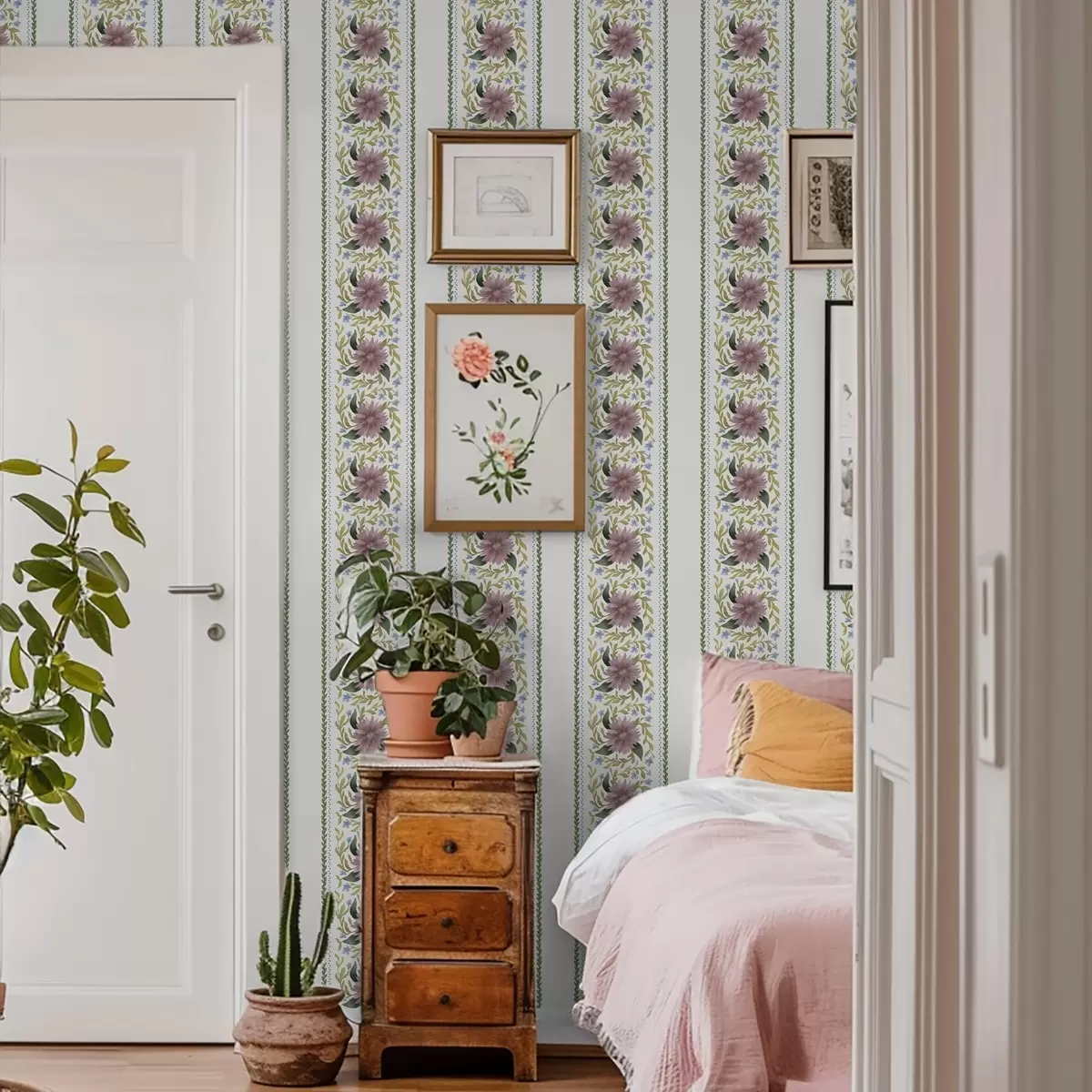Tapete Vertikale Blumenstreifen in lila-blauen Farbtönen Nr. a00809