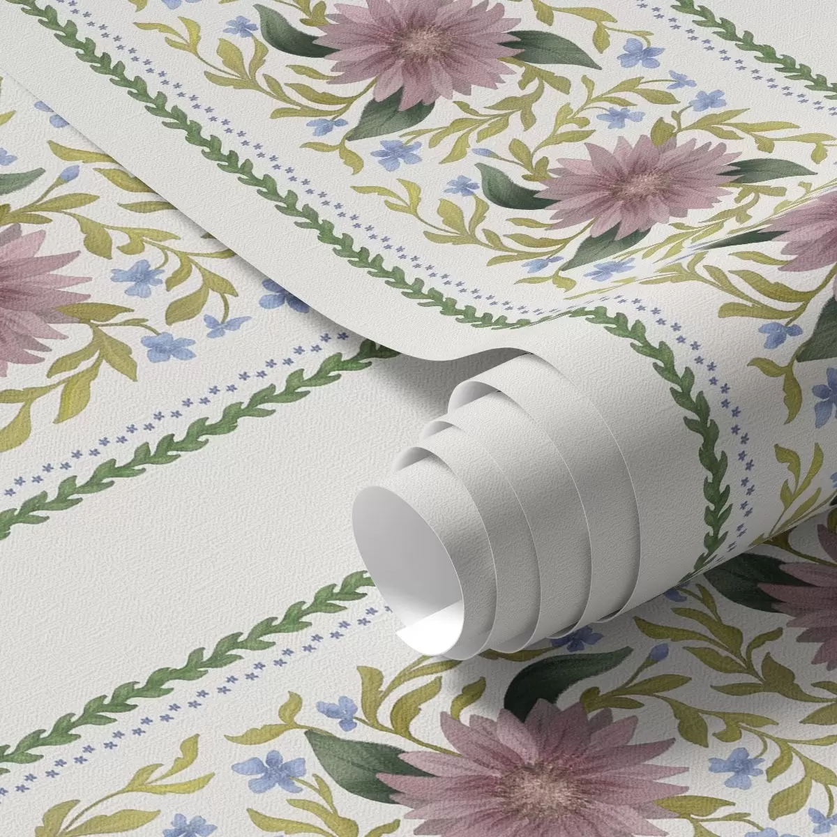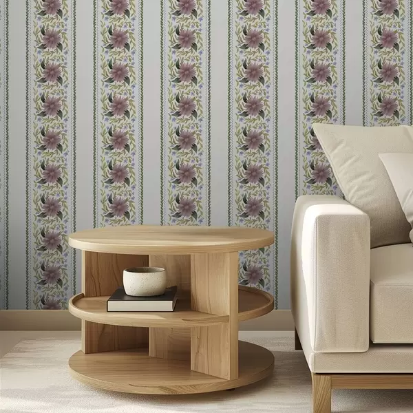 Tapete Vertikale Blumenstreifen in lila-blauen Farbtönen Nr. a00809