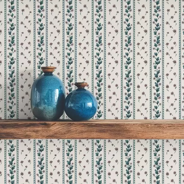 Tapete Vertikale Blumenstreifen in Blau-Brauntönen Nr. a00811