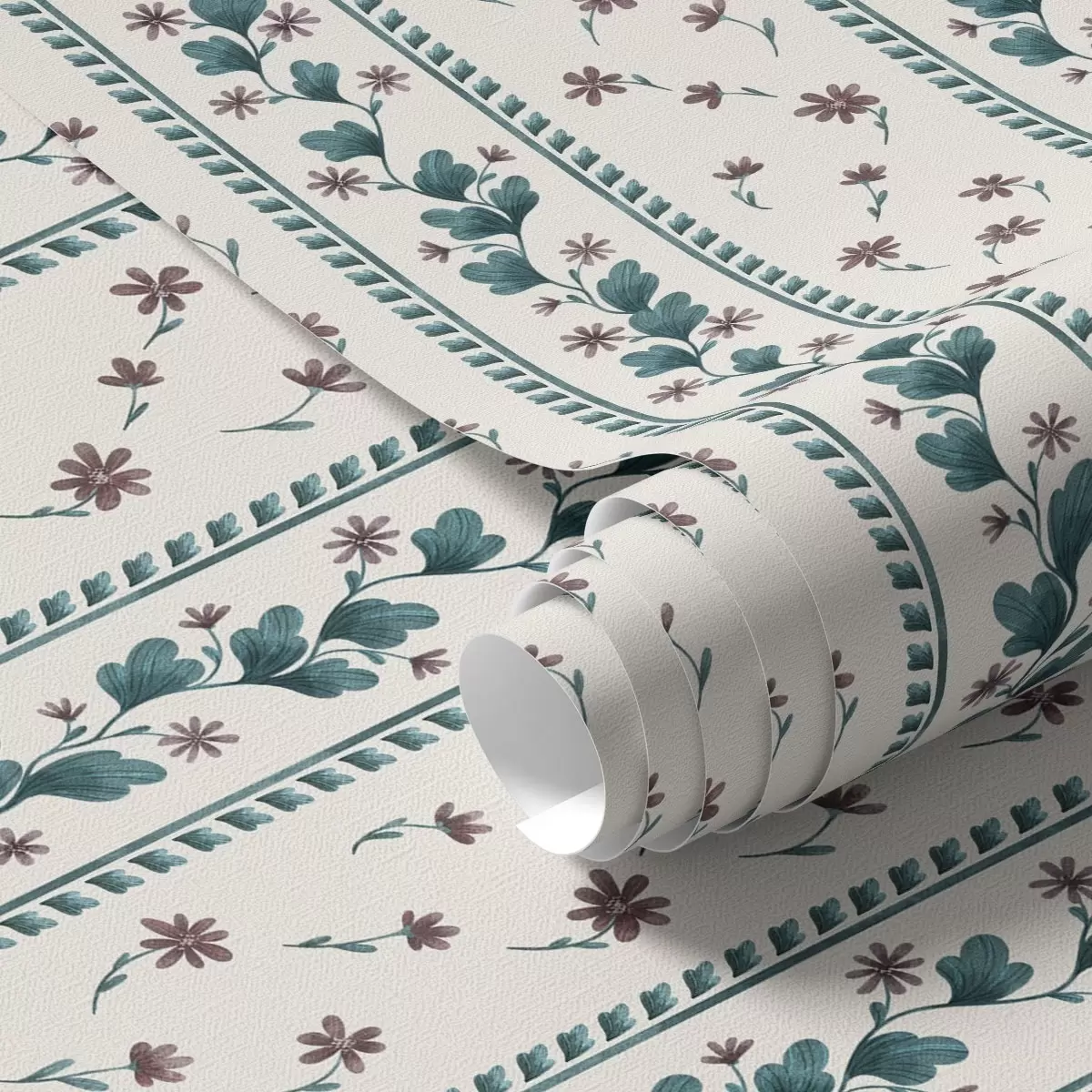 Tapete Vertikale Blumenstreifen in Blau-Brauntönen Nr. a00811