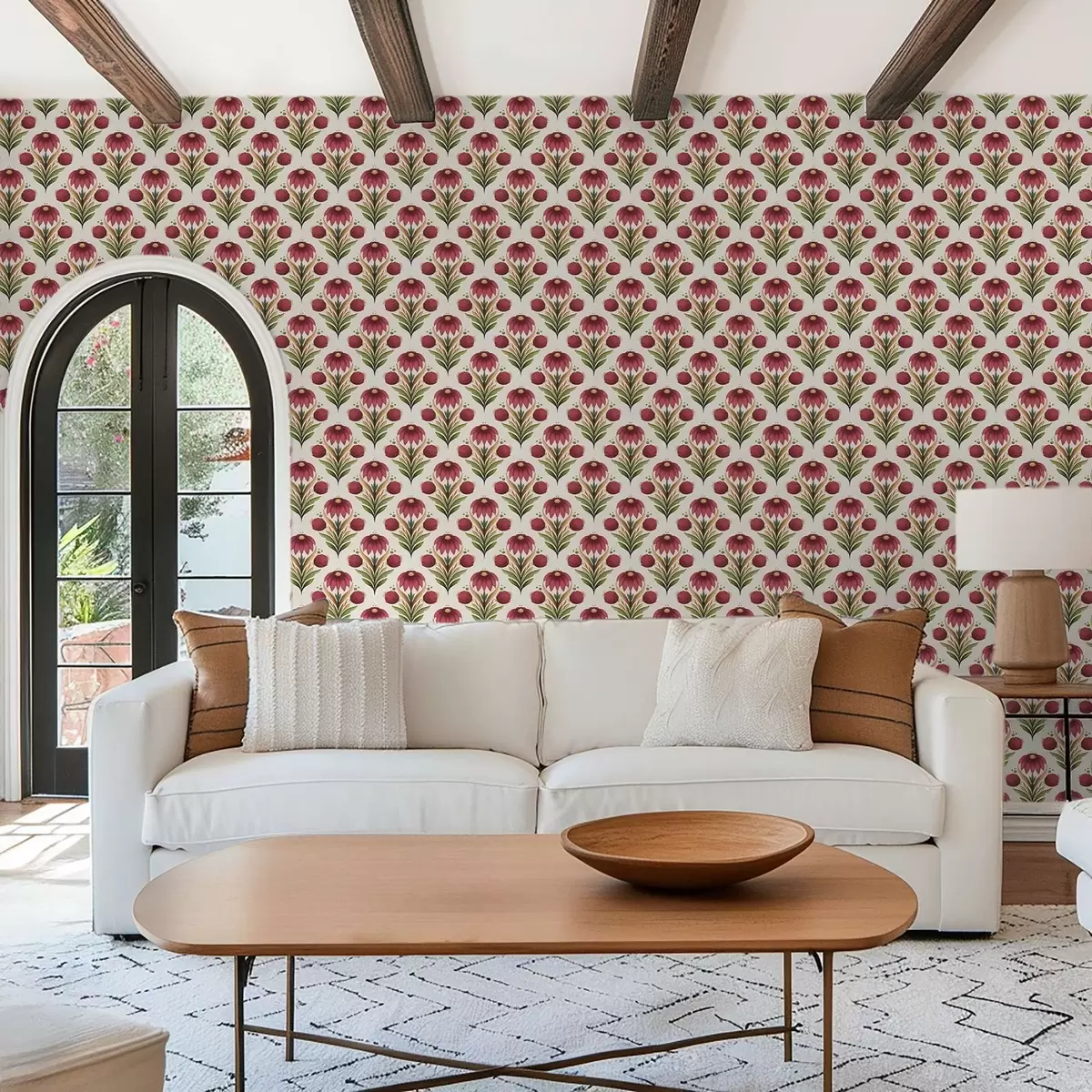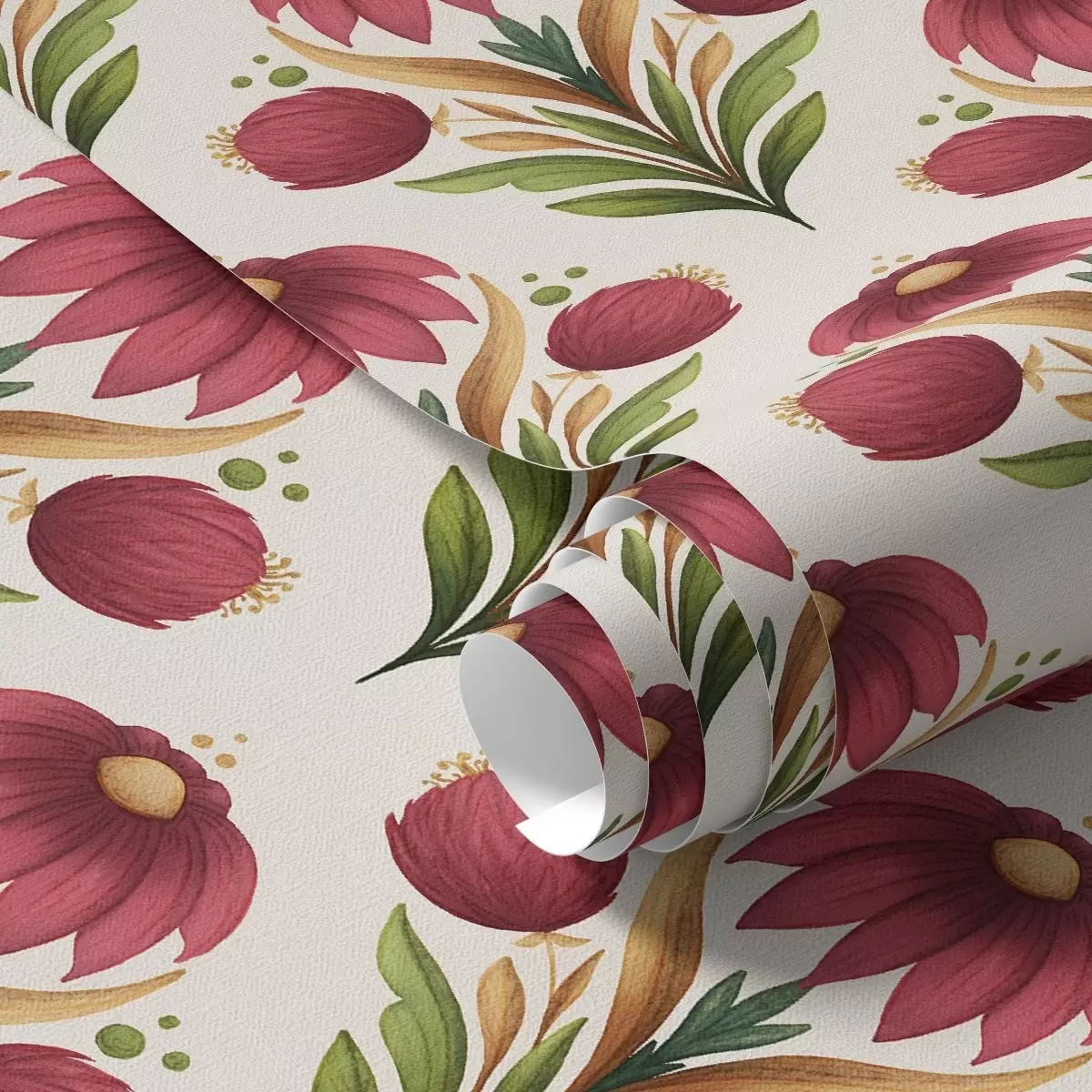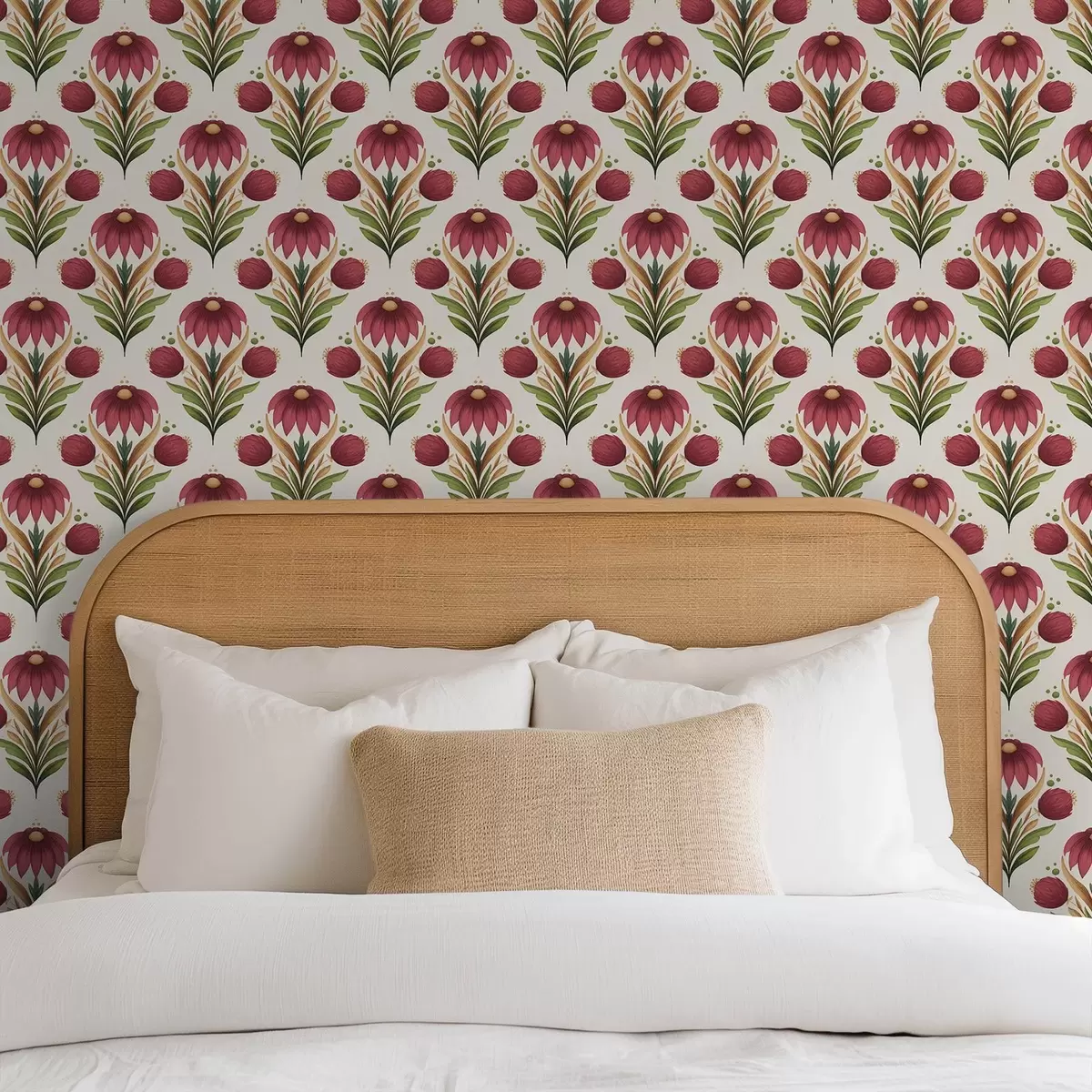 Tapete Symmetrisches Blumenornament in satten Rot-Grün-Tönen Nr. a00812v4