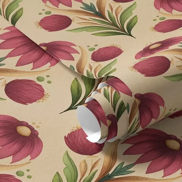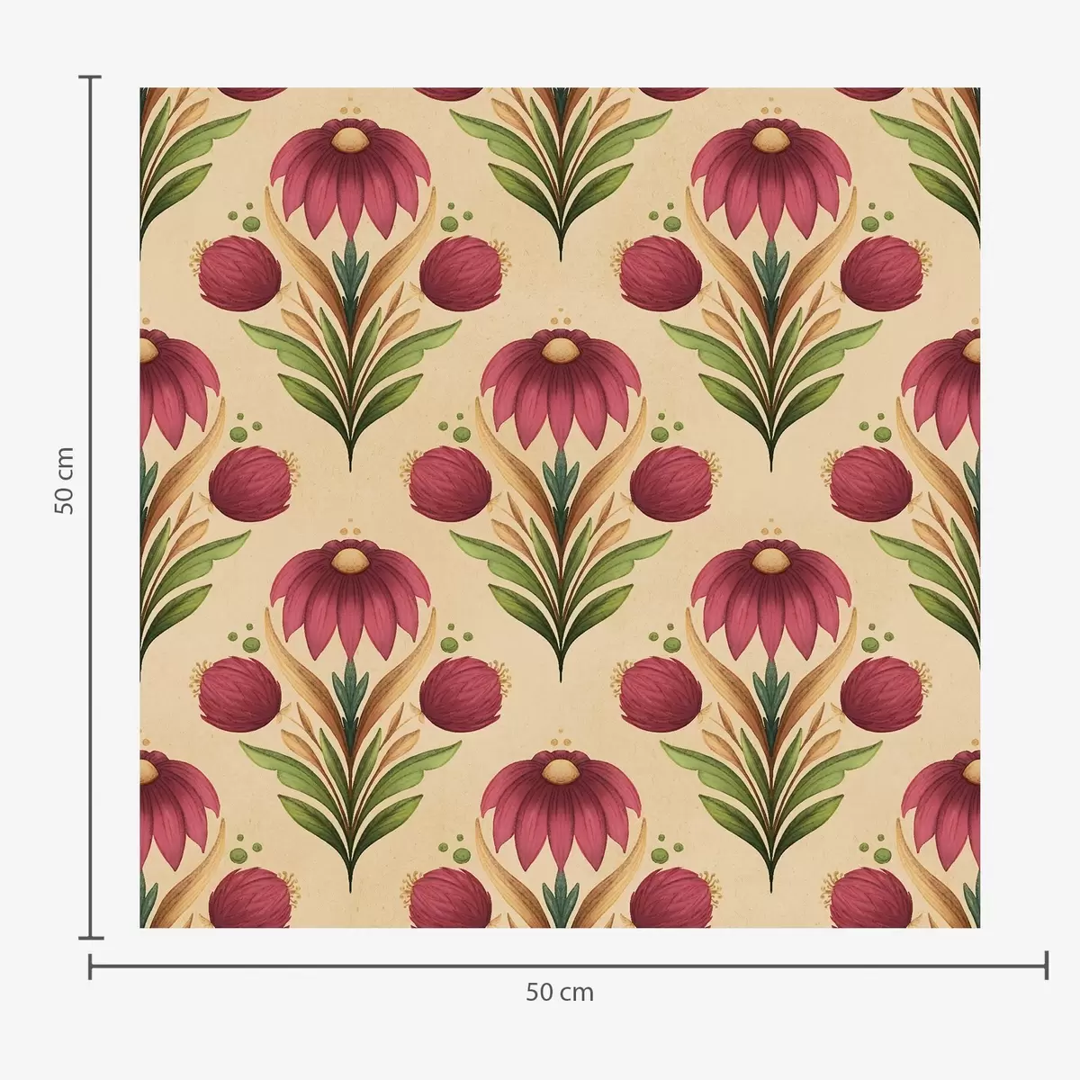 Tapete Symmetrisches Blumenornament auf warmem beigem Hintergrund Nr. a00812v6