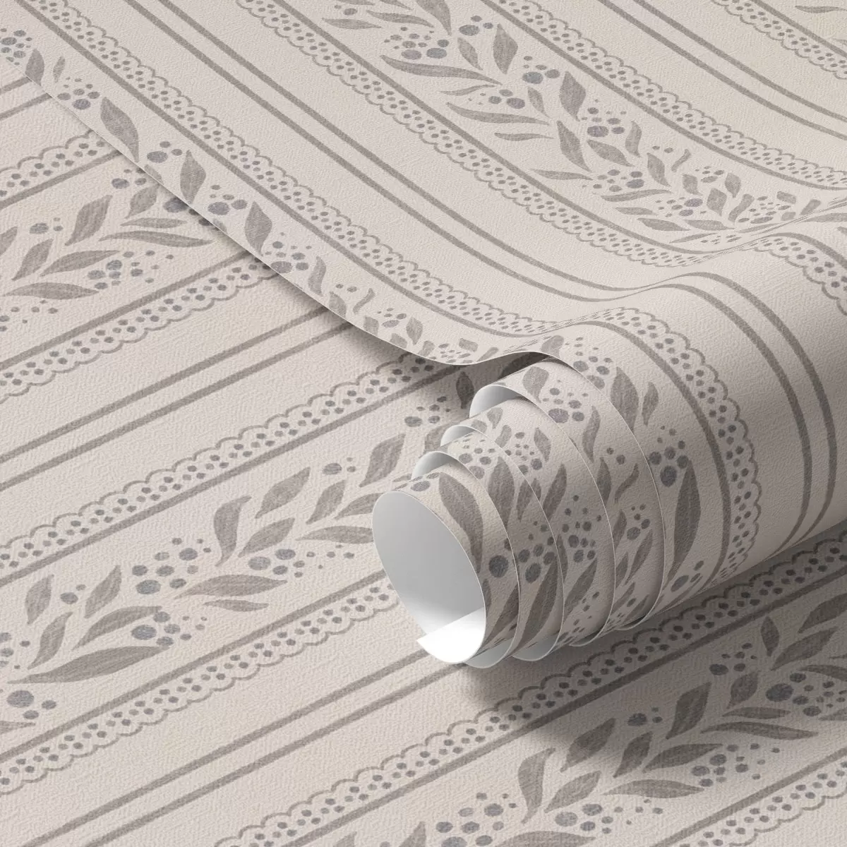 Tapete Streifen mit Spitze und grau-beigen Zweigen Nr. a00814