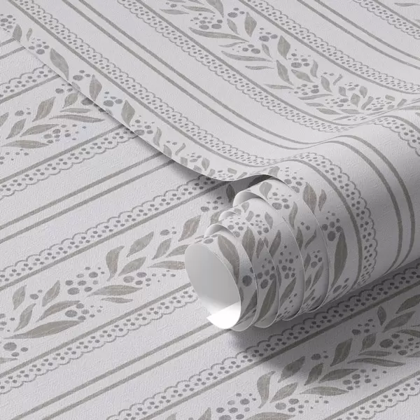 Tapete Streifen mit Spitze und Zweigen auf kühlem Weiß Nr. a00814v1