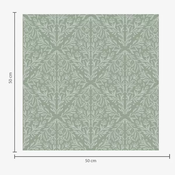 Tapete Botanischer Damast auf mint-olivem Hintergrund Nr. a00815