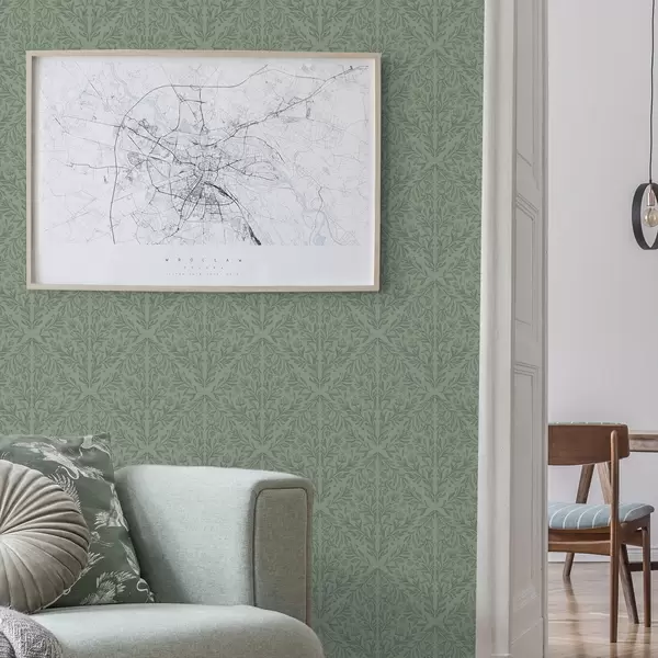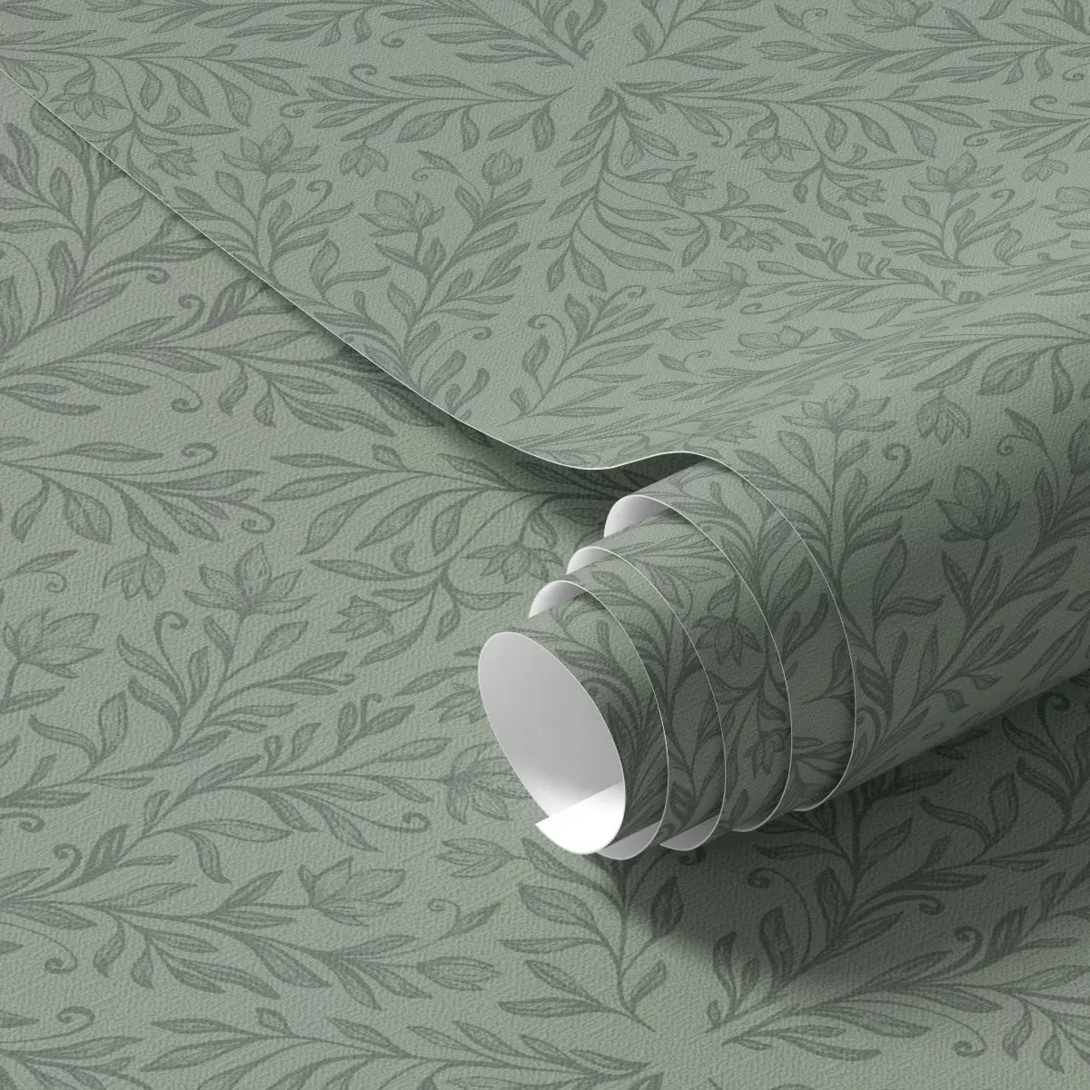 Tapete Feiner botanischer Damast in gedecktem Grün Nr. a00815v1