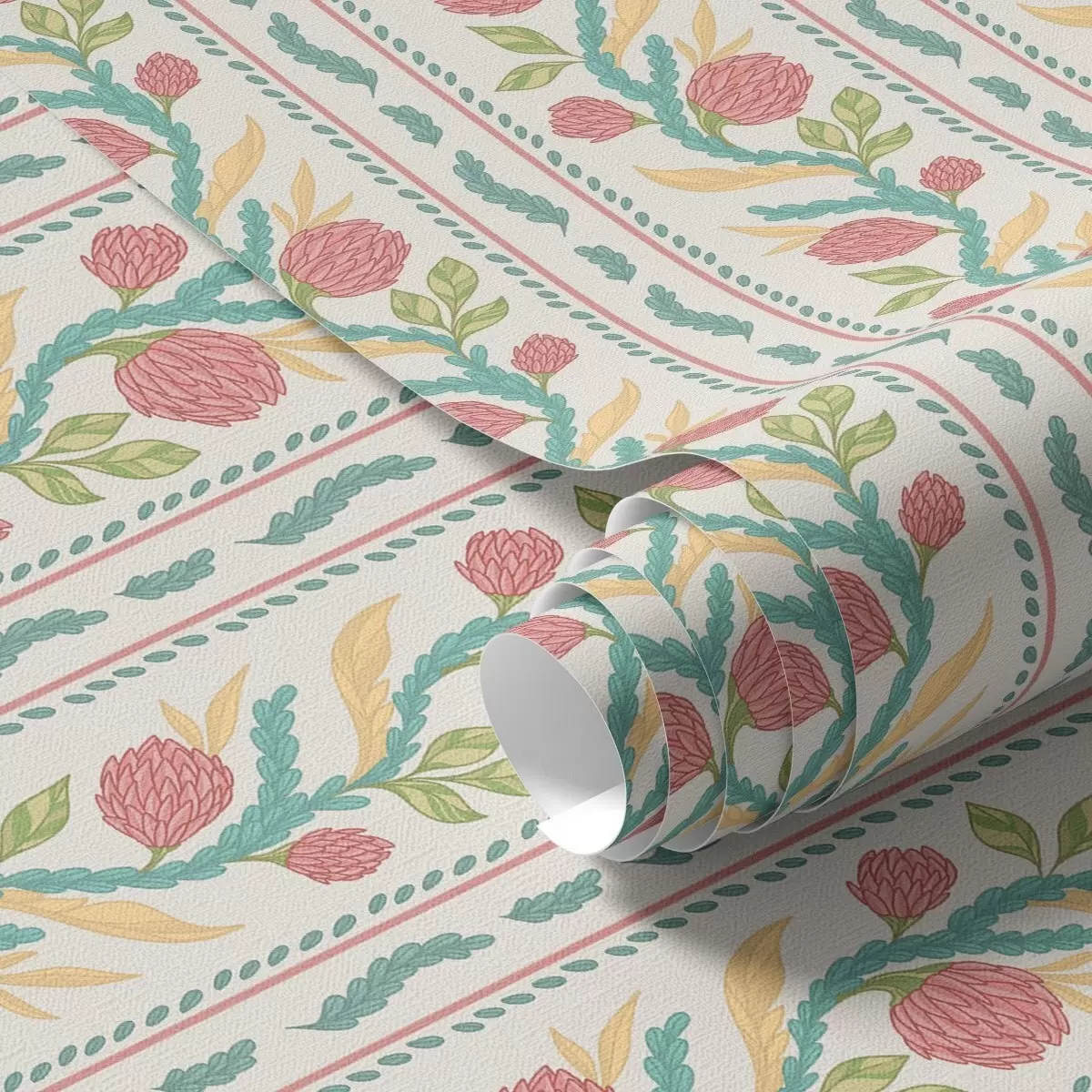 Tapete Streifen mit Korallenknospen auf hellcremefarbenem Hintergrund Nr. a00816v1