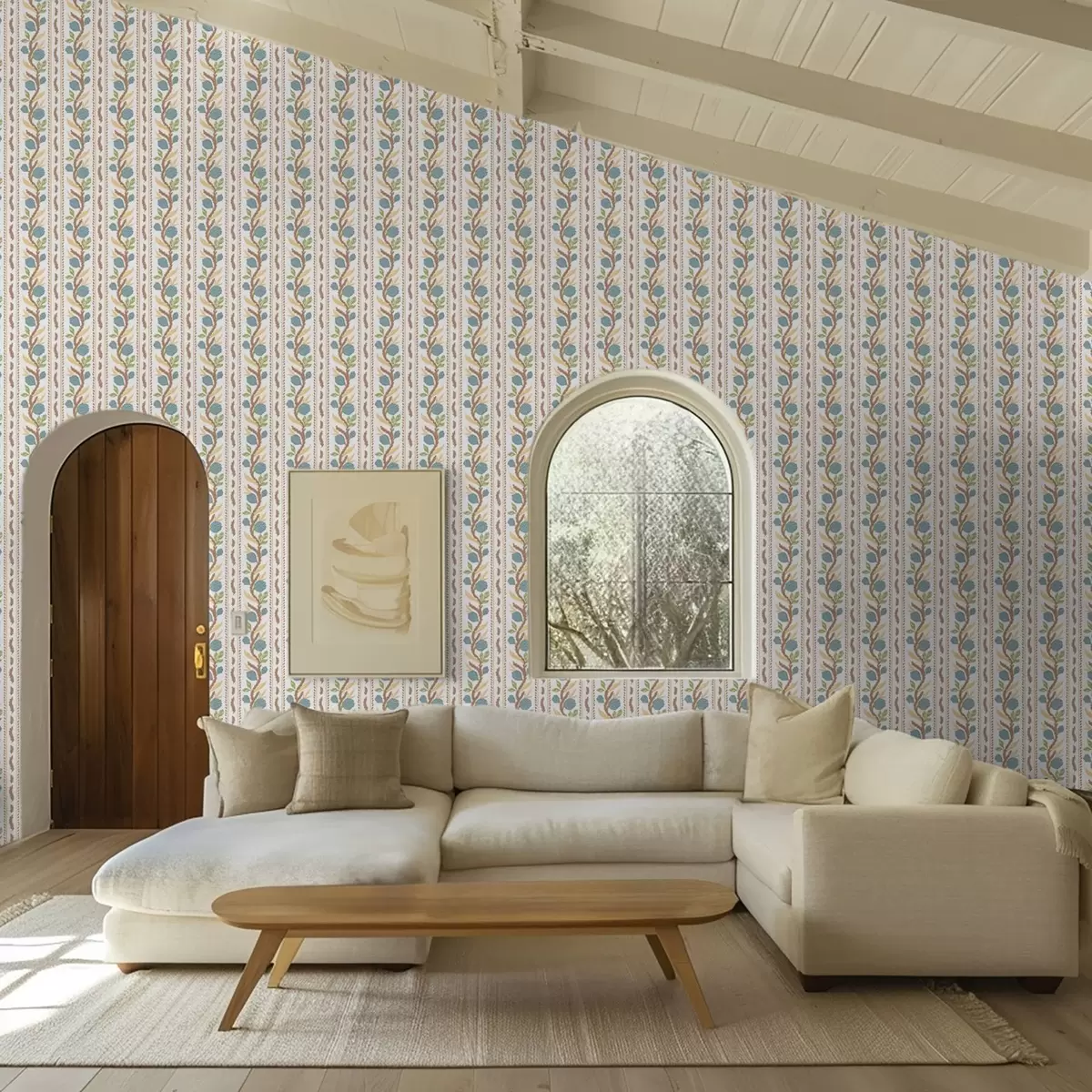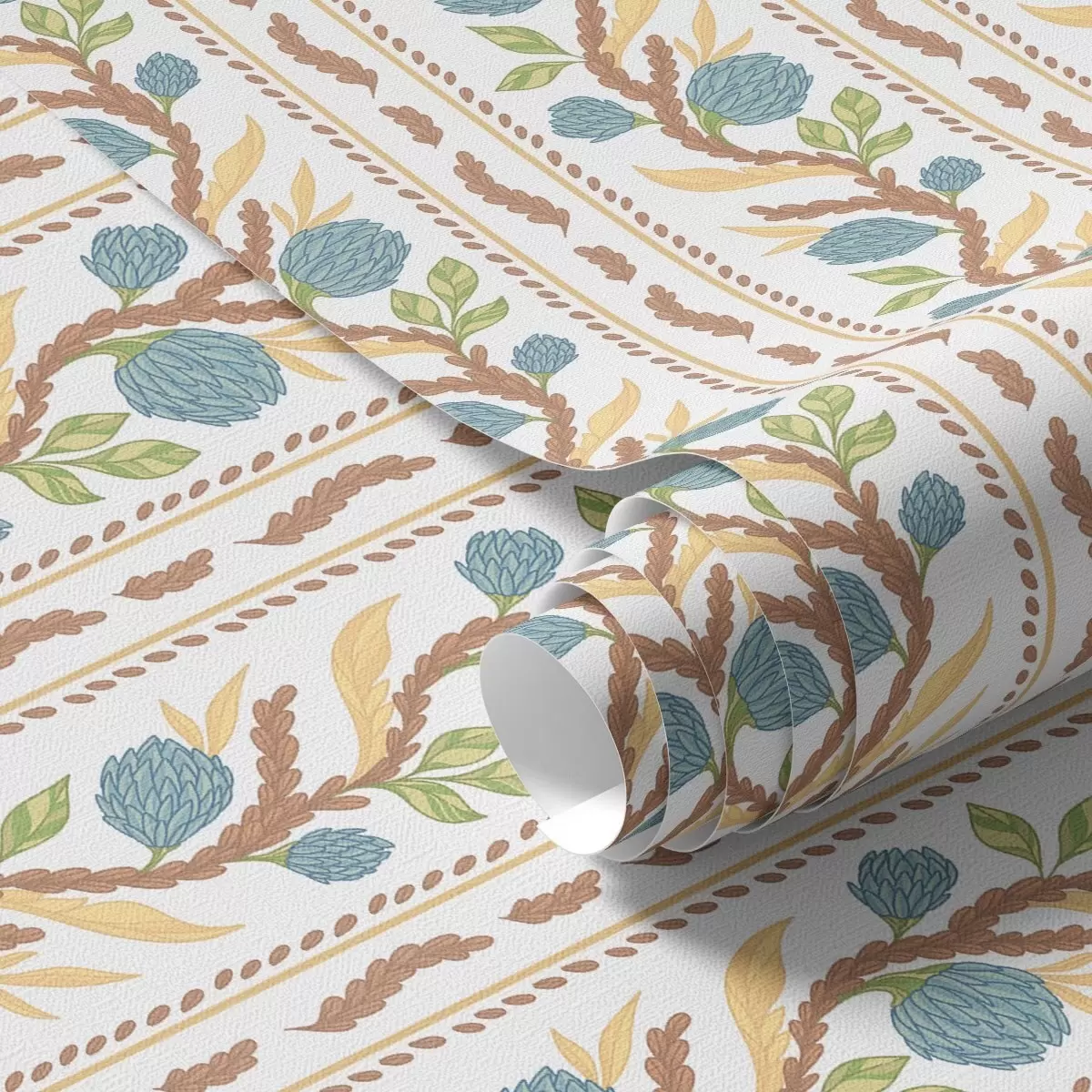 Tapete Vertikale Bouquetstreifen mit blauen Blumen Nr. a00816v2