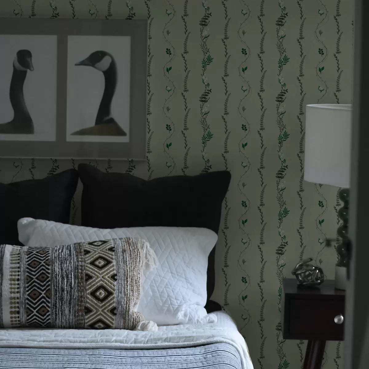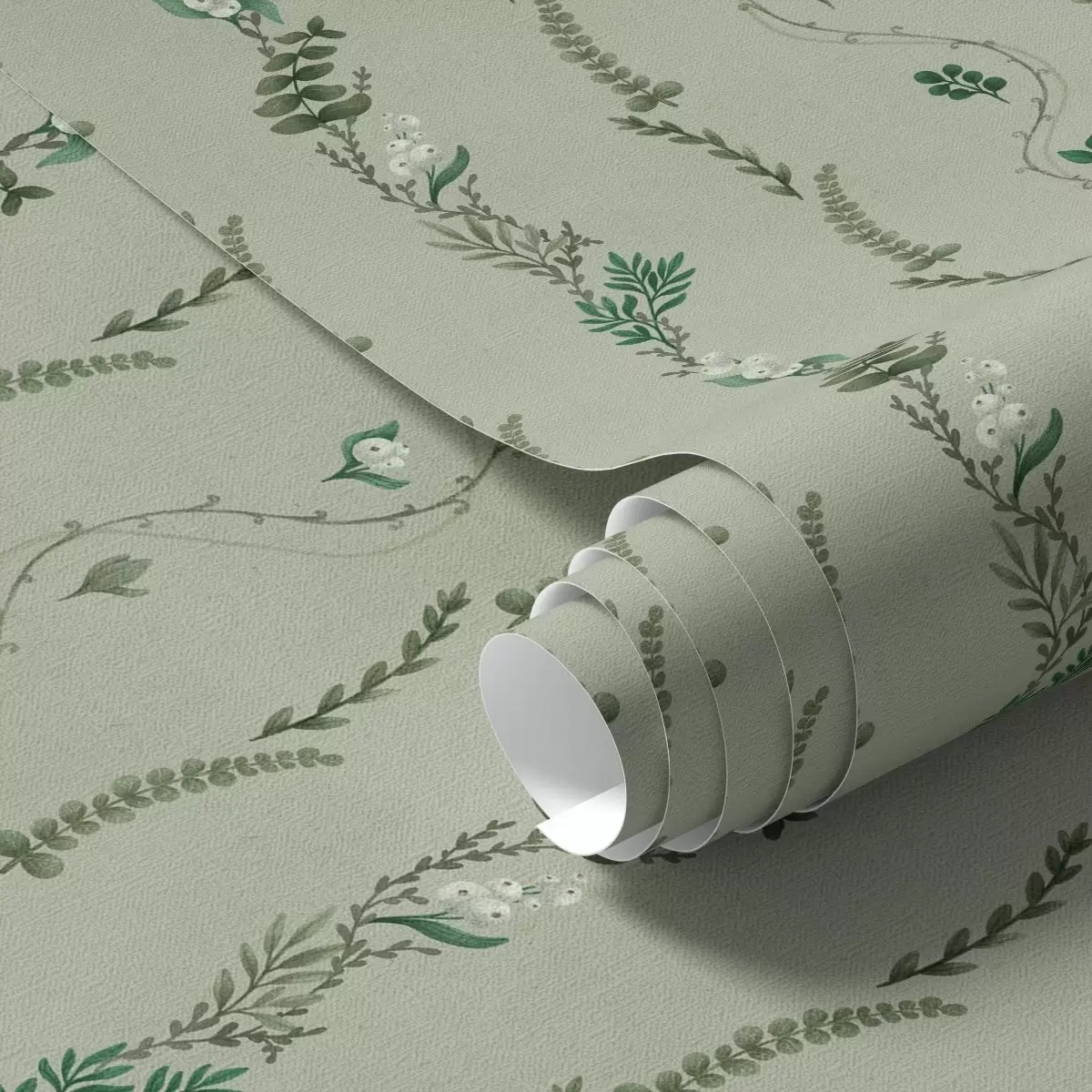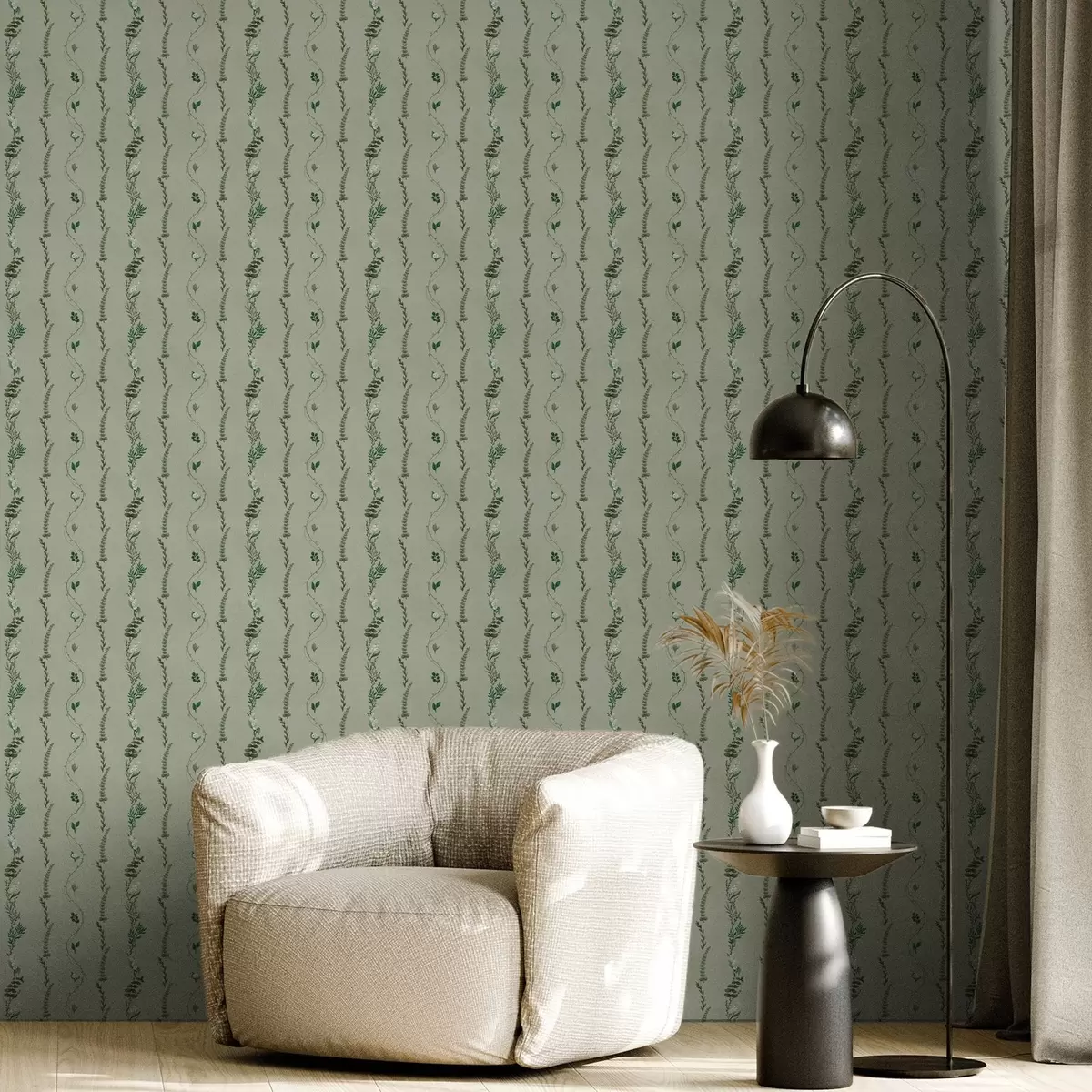Tapete Vertikale Ranken und Zweige auf gedämpftem Grün Nr. a00817v1