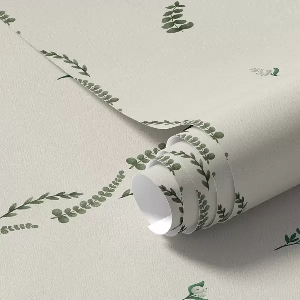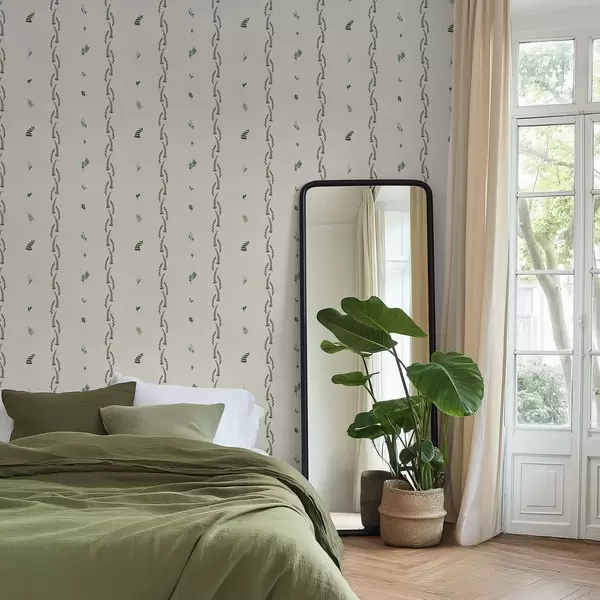 Tapete Spärliche grüne Triebe in vertikalem Rhythmus, cremefarbener Hintergrund Nr. a00818