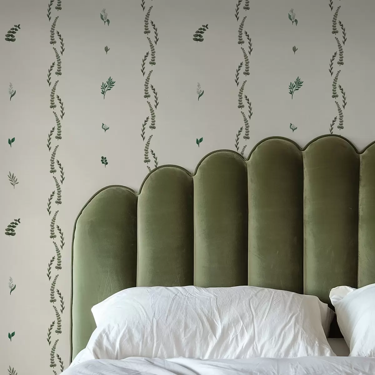 Tapete Spärliche grüne Triebe in vertikalem Rhythmus, cremefarbener Hintergrund Nr. a00818