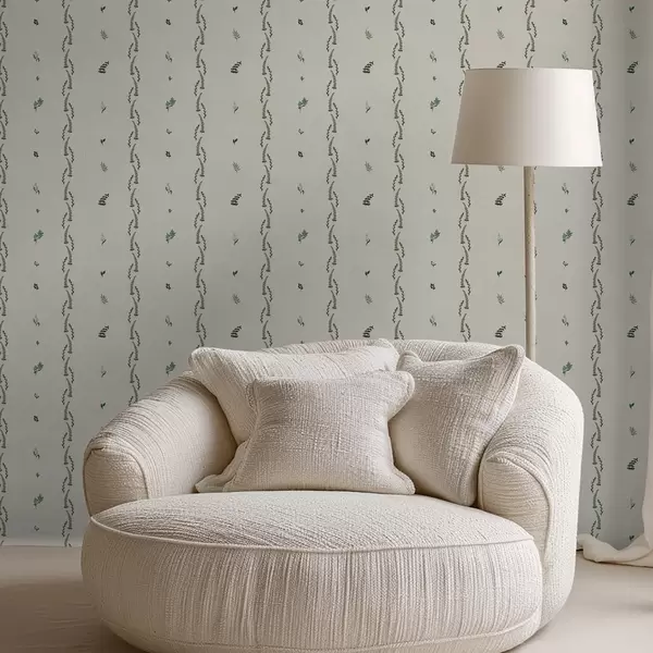 Tapete Spärliche grüne Triebe in vertikalem Rhythmus, cremefarbener Hintergrund Nr. a00818