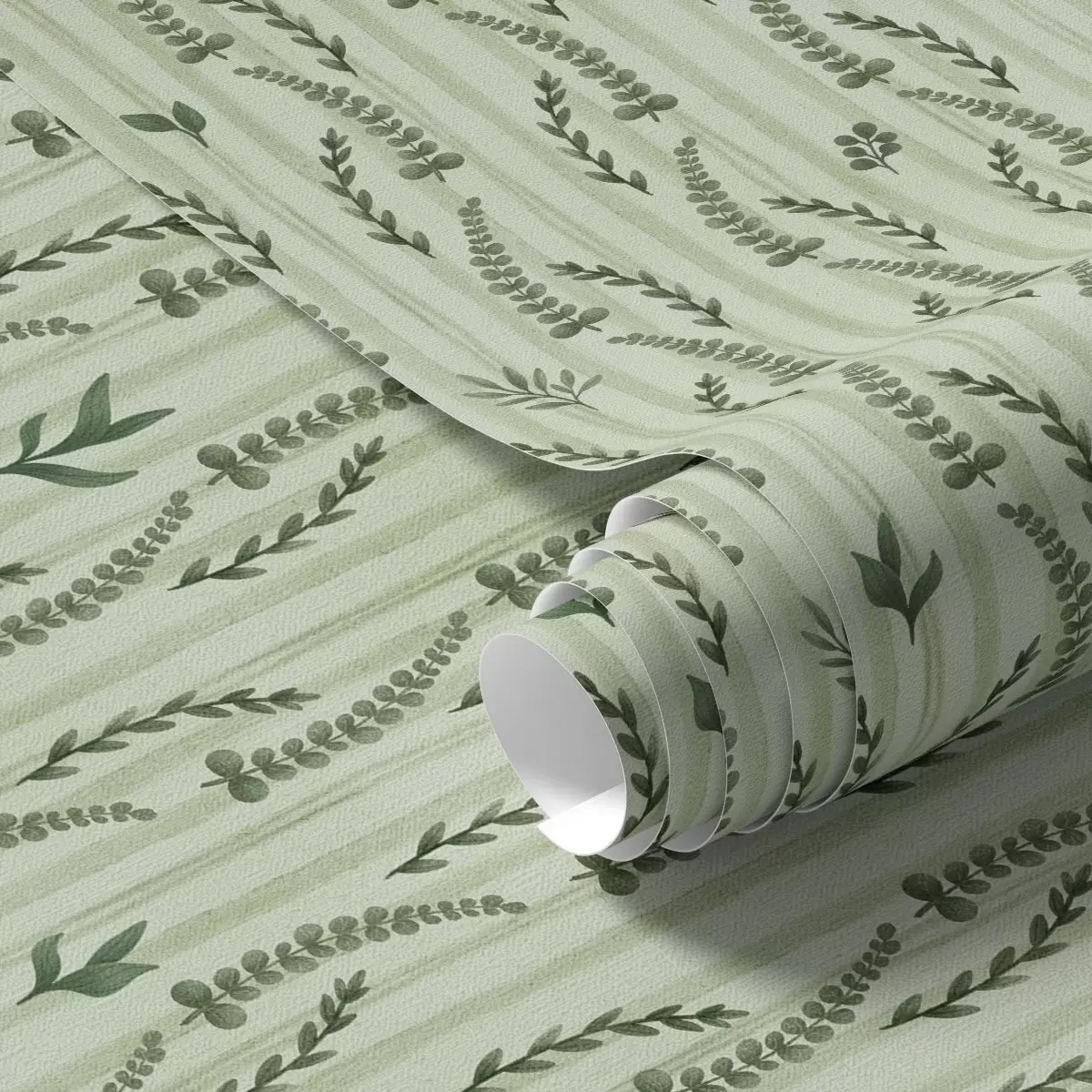 Tapete Dichtes grünes Gras und Triebe auf Minze mit Streifen Nr. a00819