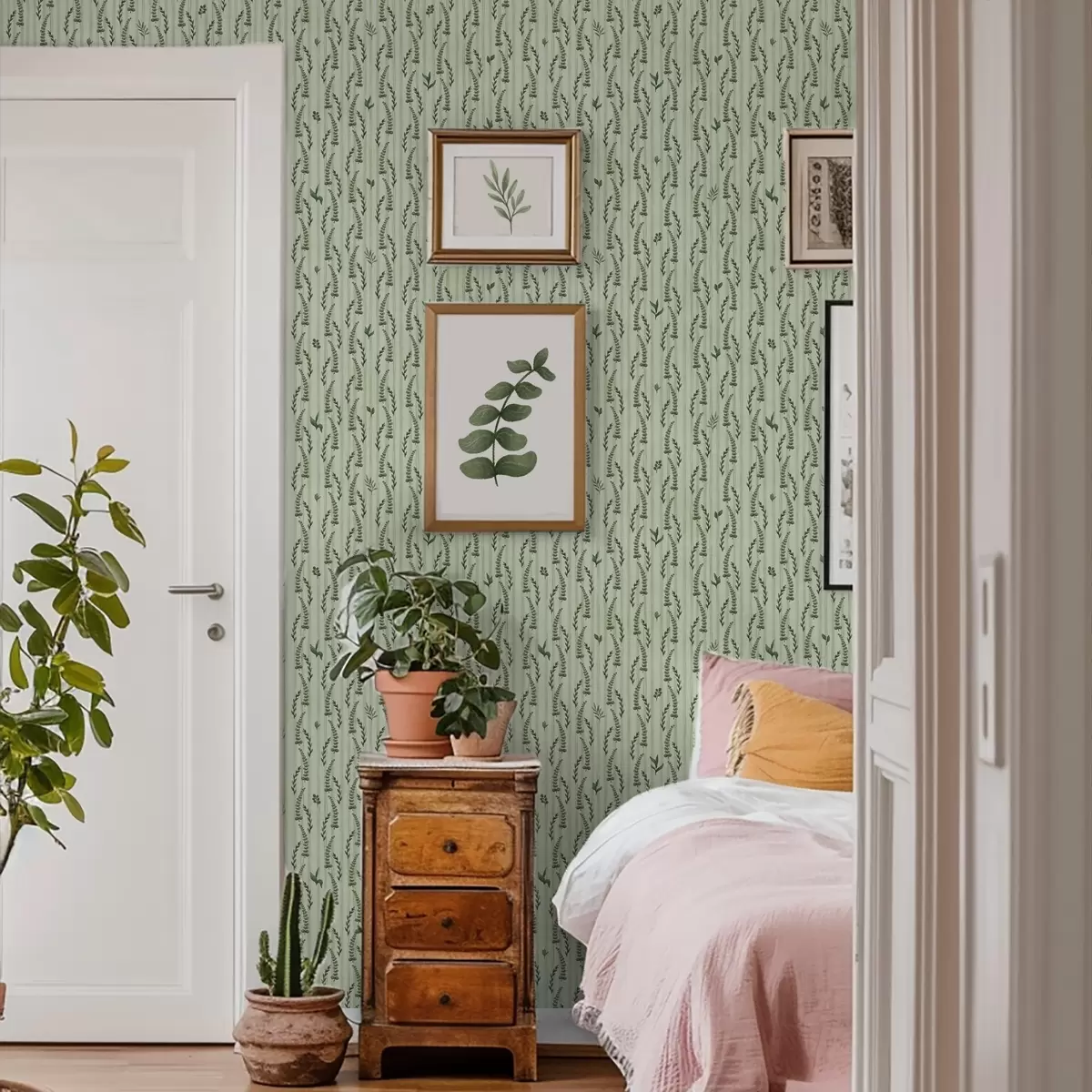 Tapete Dichtes grünes Gras und Triebe auf Minze mit Streifen Nr. a00819