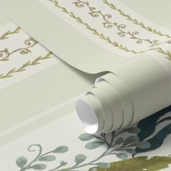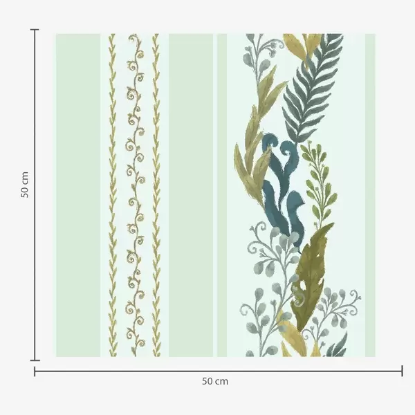 Tapete Breite Streifen mit malerischen Zweigen in Blau-Oliv-Tönen Nr. a00825