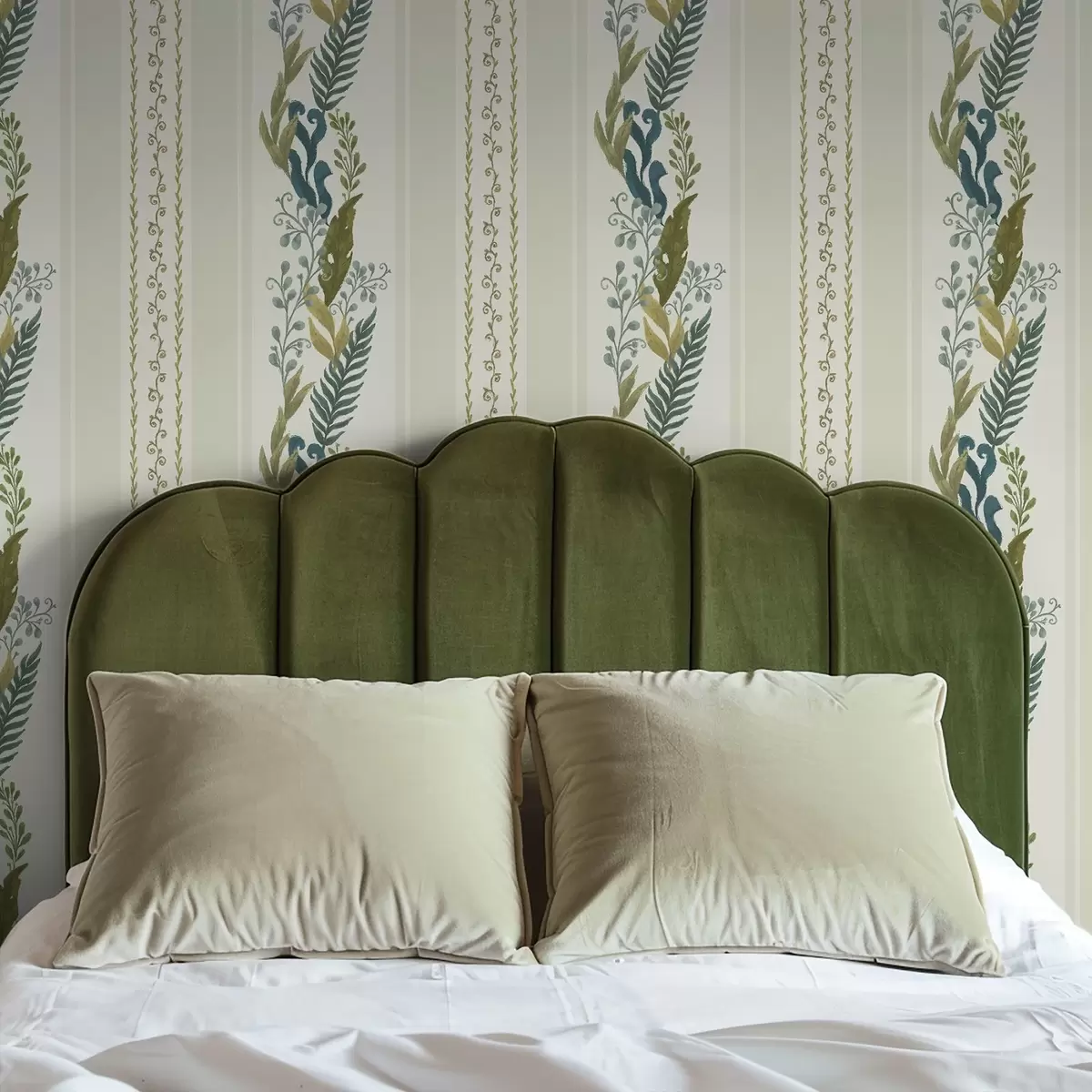 Tapete Breite Streifen mit malerischen Zweigen in Blau-Oliv-Tönen Nr. a00825