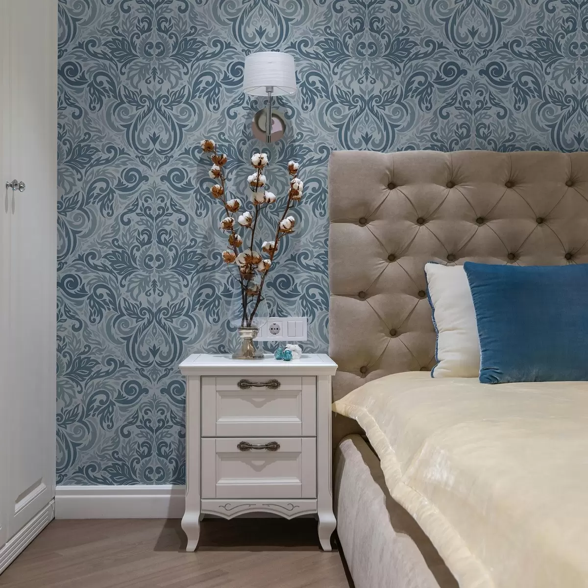 Tapete Klassischer Damast, tiefblau auf hellblau Nr. a00826