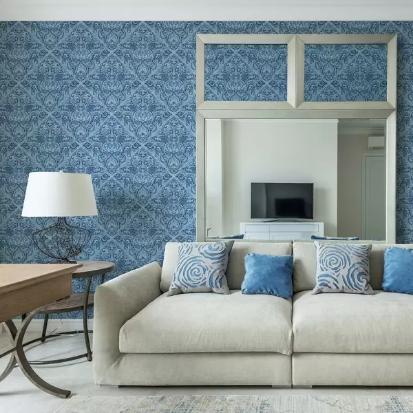 Tapete Damast in kühlen Blautönen, stärkerer Kontrast Nr. a00826v2