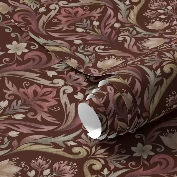 Tapete Tulpenornament, satter burgunderroter Hintergrund Nr. a00827v2