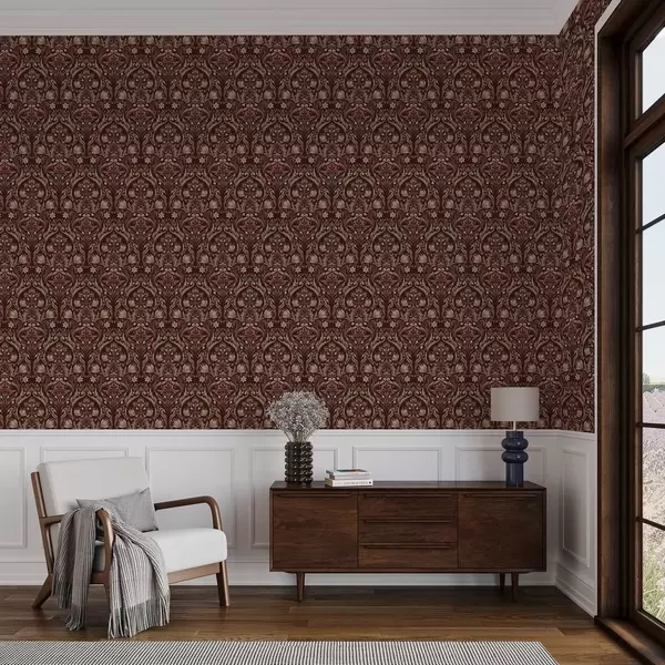 Tapete Tulpenornament, satter burgunderroter Hintergrund Nr. a00827v2