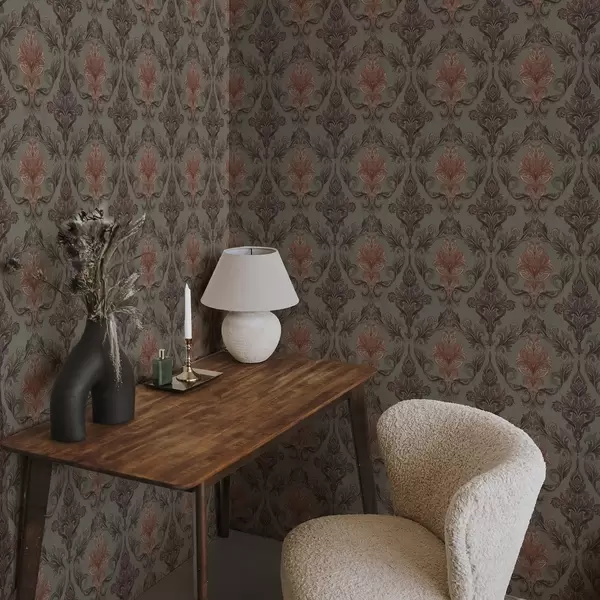 Tapete Terrakotta-Damast auf gedecktem Olivgrün Nr. a00828v3
