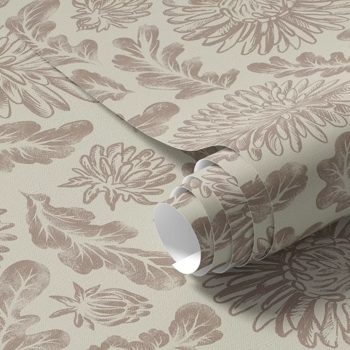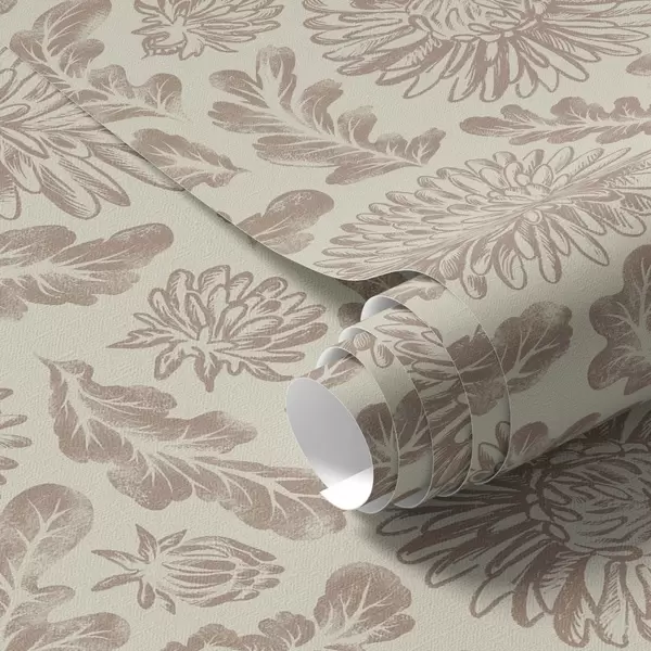 Tapete Chrysanthemen und Eichenblätter in sanftem Beige-Braun Nr. a00840