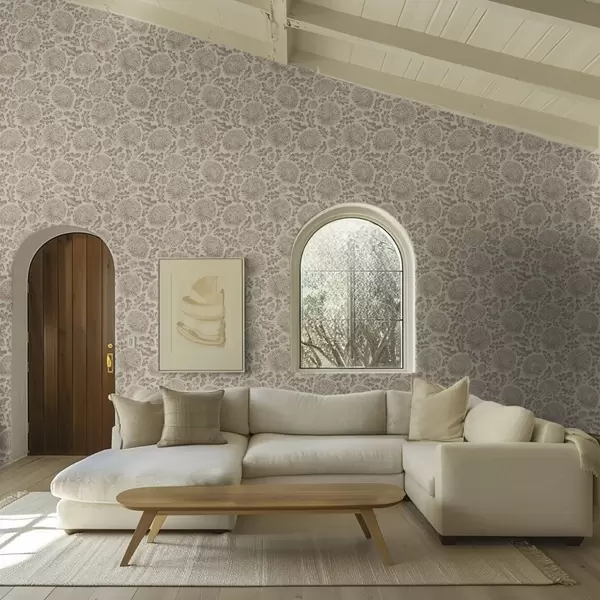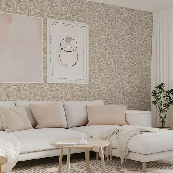 Tapete Chrysanthemen und Eichenblätter in sanftem Beige-Braun Nr. a00840