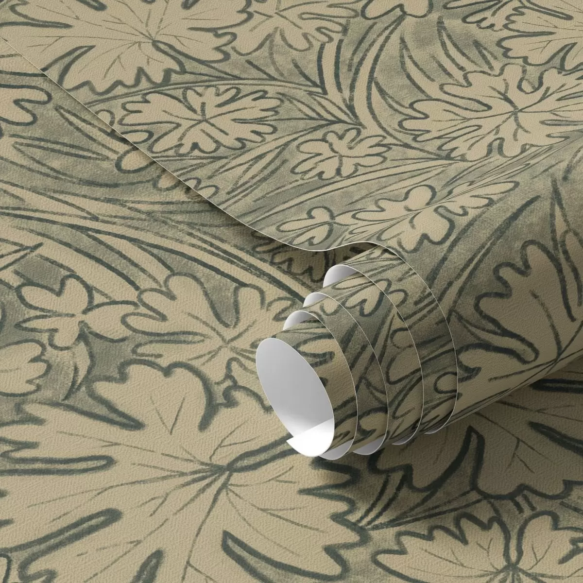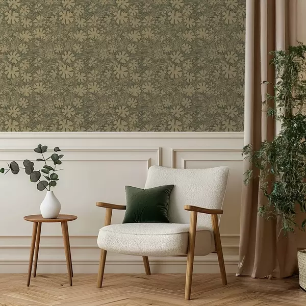 Tapete Feldblätter und Gräser in grau-olivfarbenen Tönen Nr. a00847v1