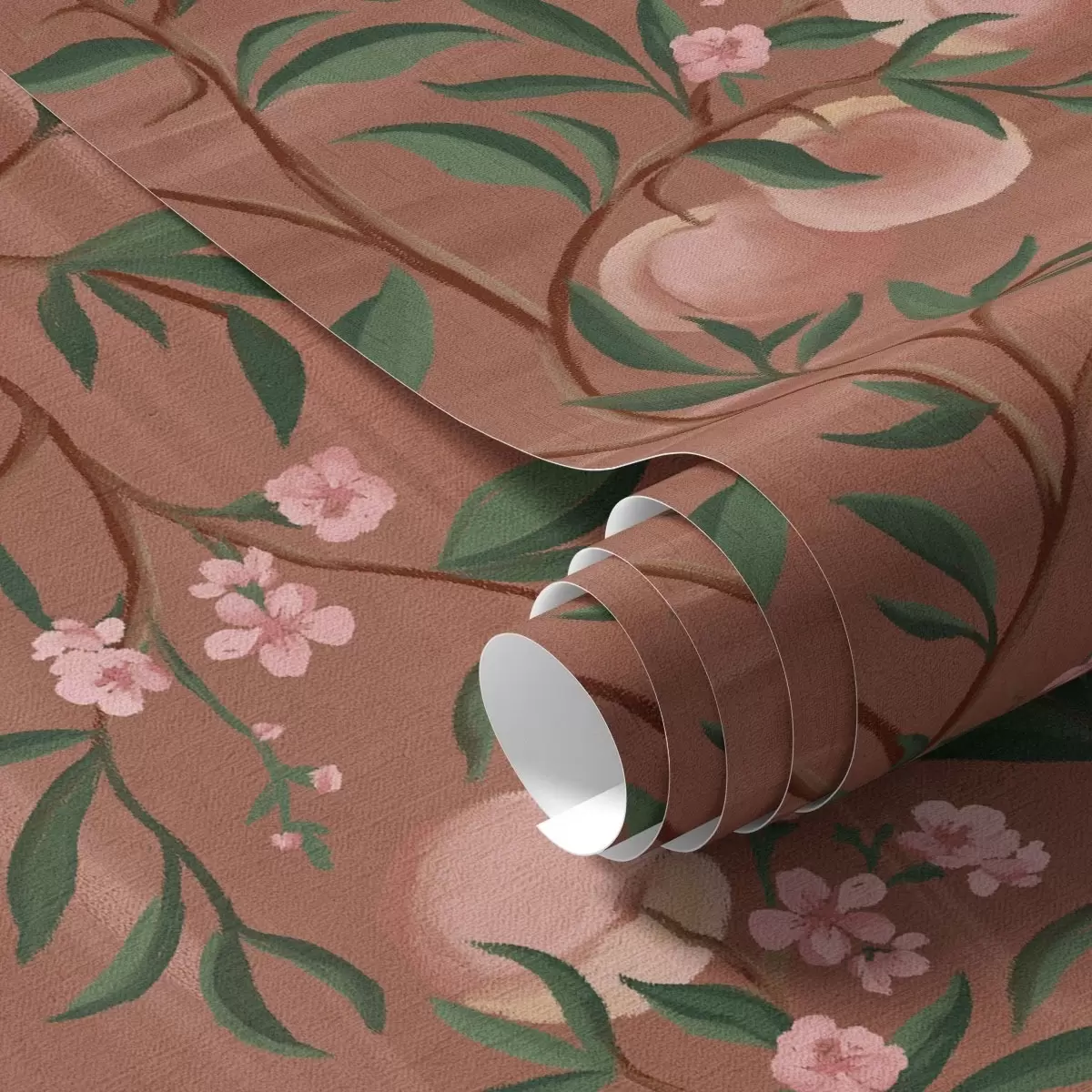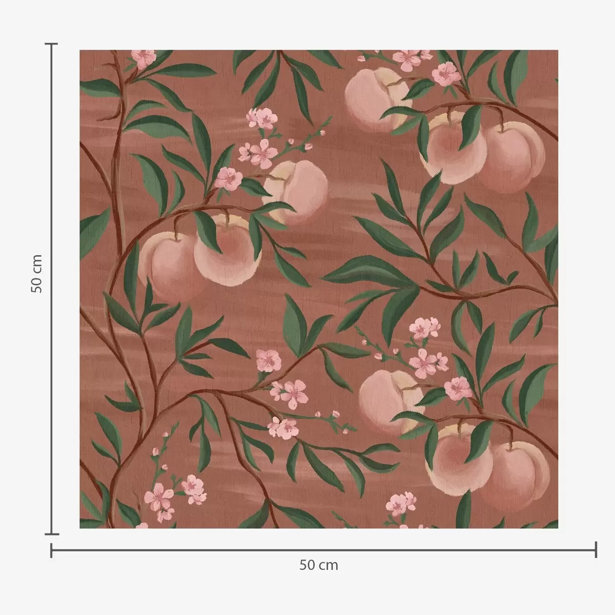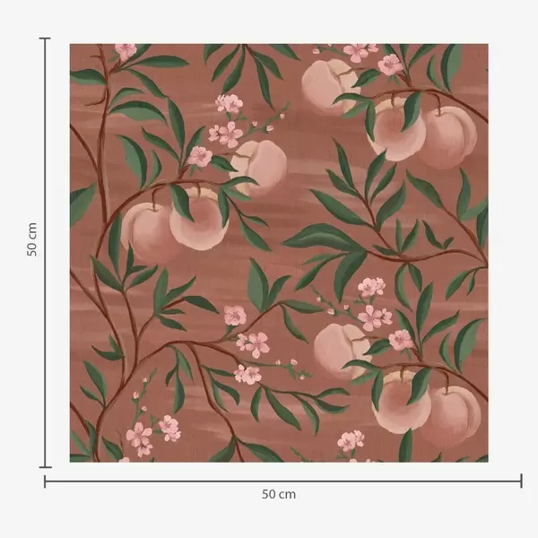 Tapete Pfirsiche an Zweigen mit rosa Blüten, terrakottafarbener Boden Nr. a00856