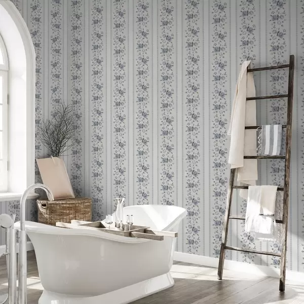 Tapete Blaue Rosen in vertikalen Streifen auf hellem Hintergrund Nr. a00860