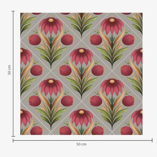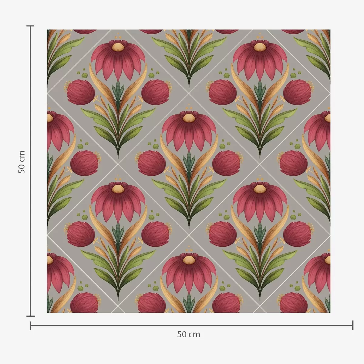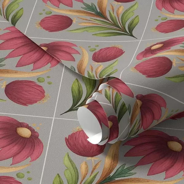 Tapete Symmetrisches Blumenornament auf grauem Hintergrund mit Diagonalen Nr. a00869