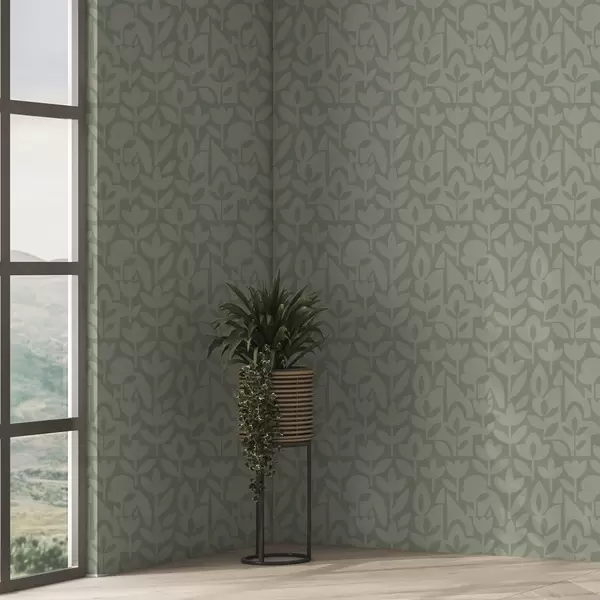 Tapete Geometrische Blumensilhouetten in zartem Salbei Nr. a00875v1