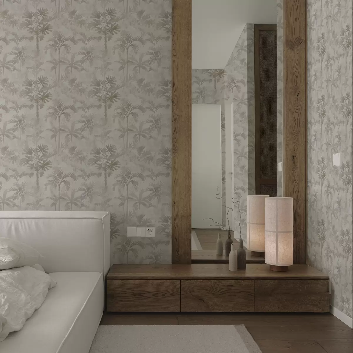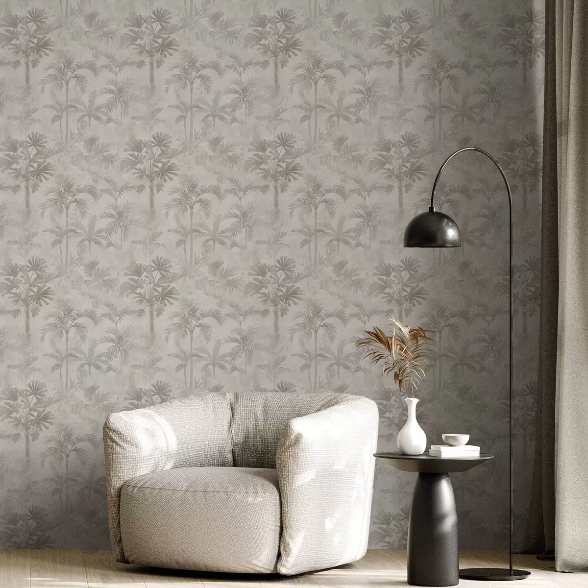 Tapete Nebelverhangener Palmenhain in warmen Beigetönen Nr. a00881