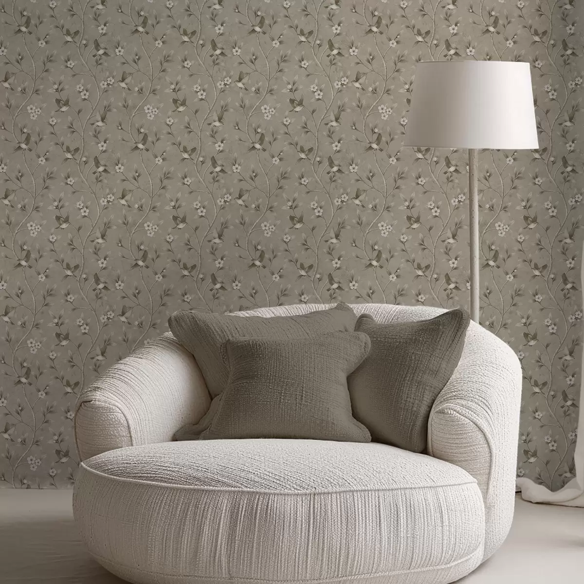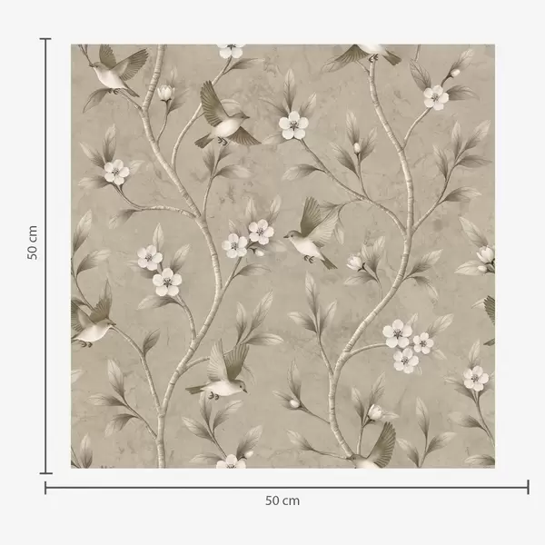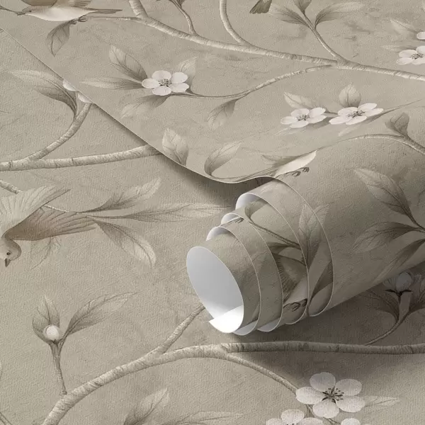 Tapete Vögel und blühende Zweige in warmen Sepia-Tönen Nr. a00882