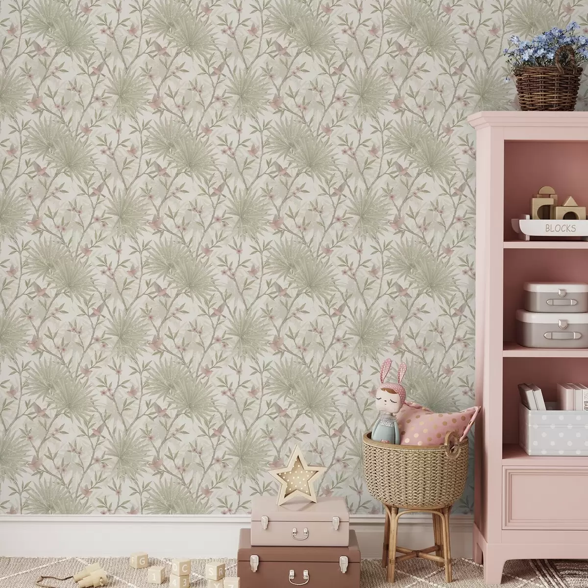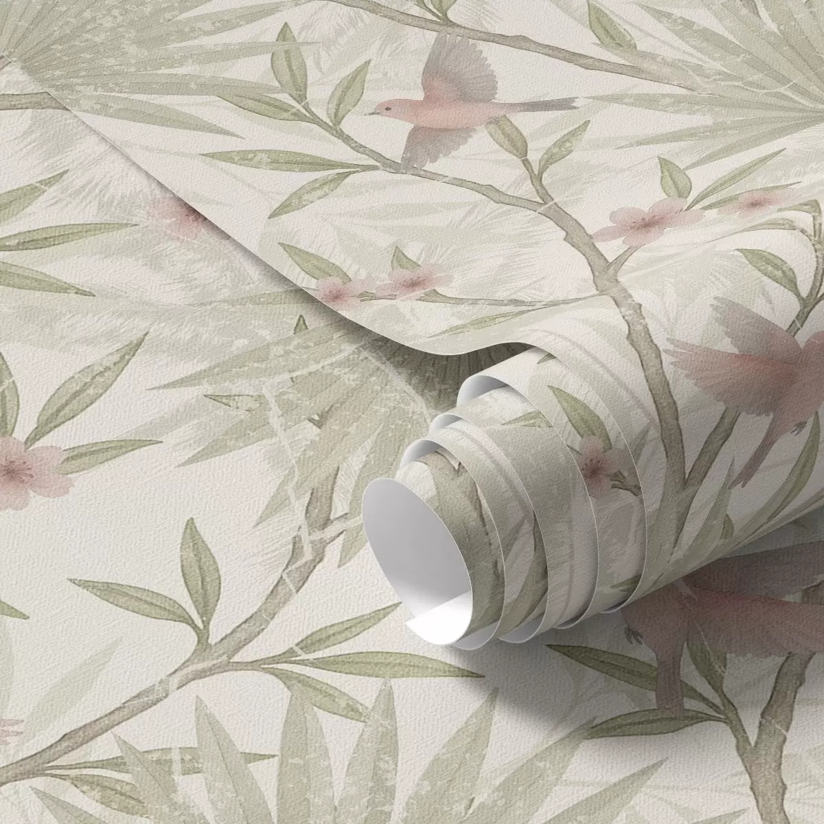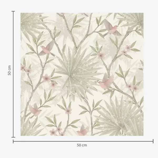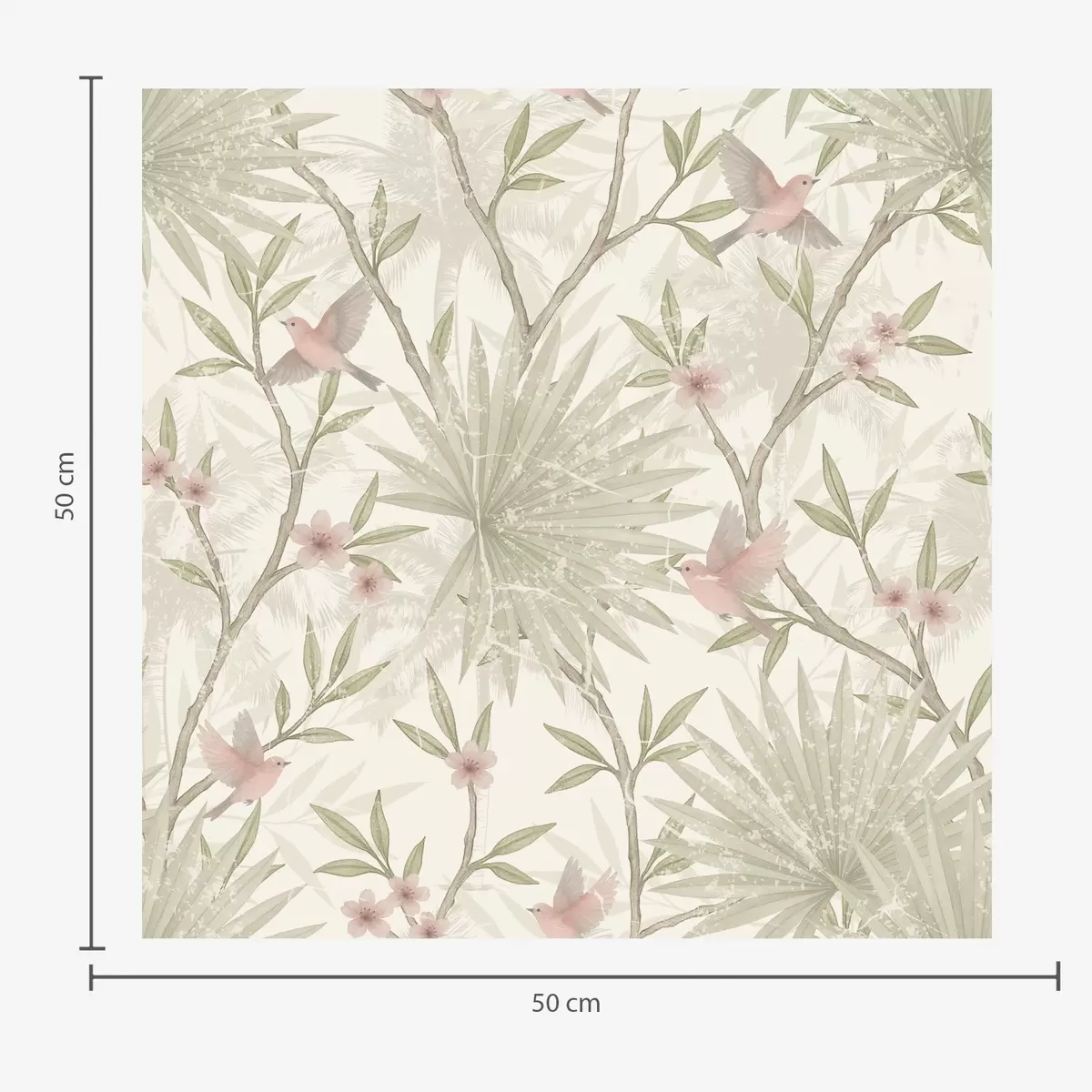 Tapete Zarte rosa Vögel zwischen Palmblättern Nr. a00883