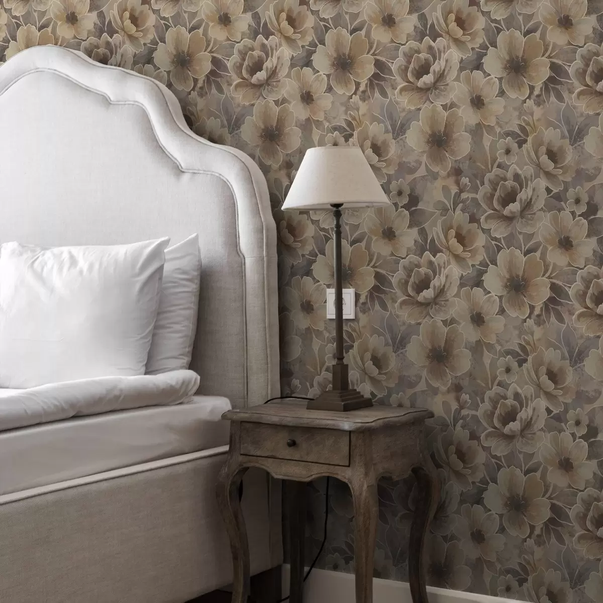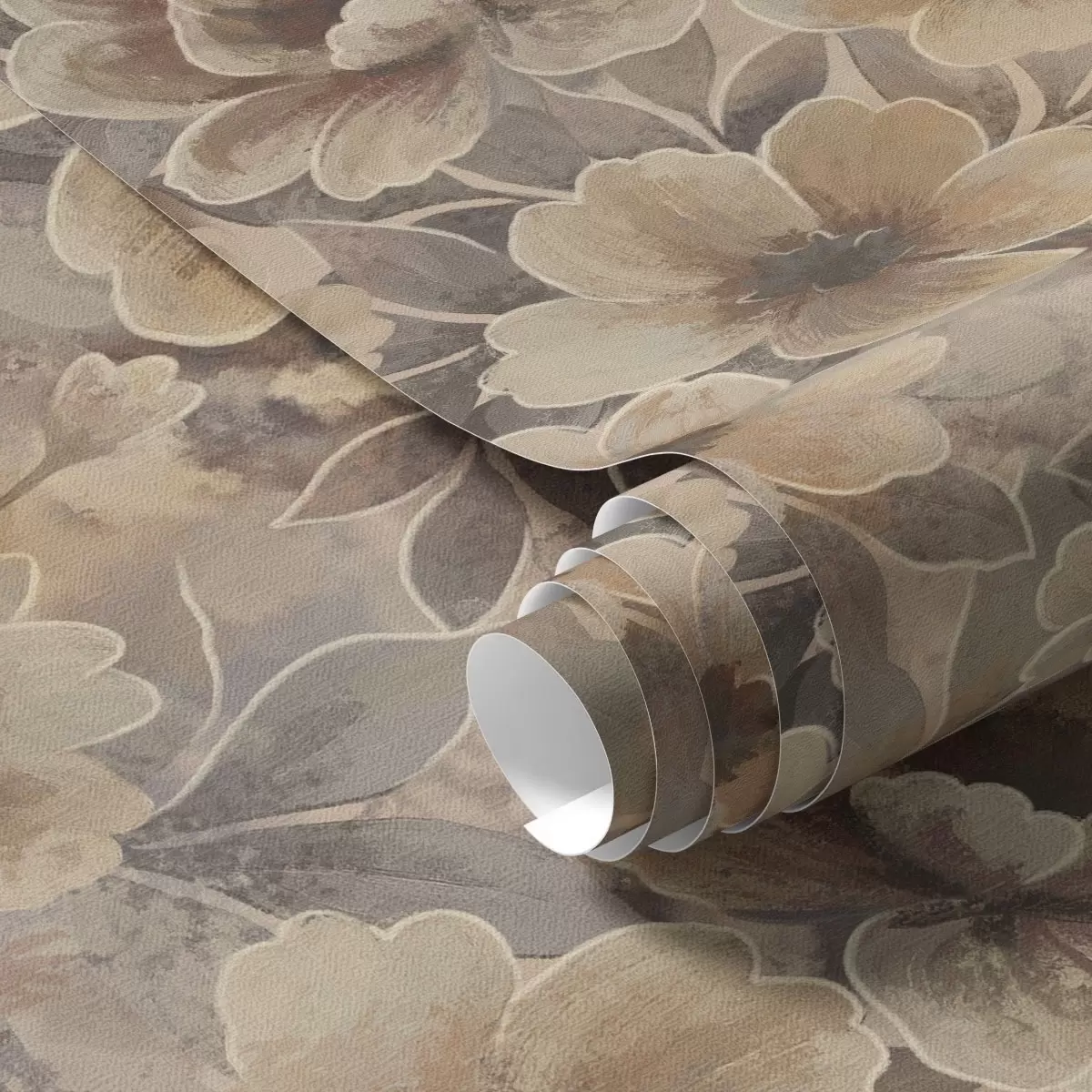 Tapete Malerische beige Blumen auf einem rauchigen abstrakten Hintergrund Nr. a00884