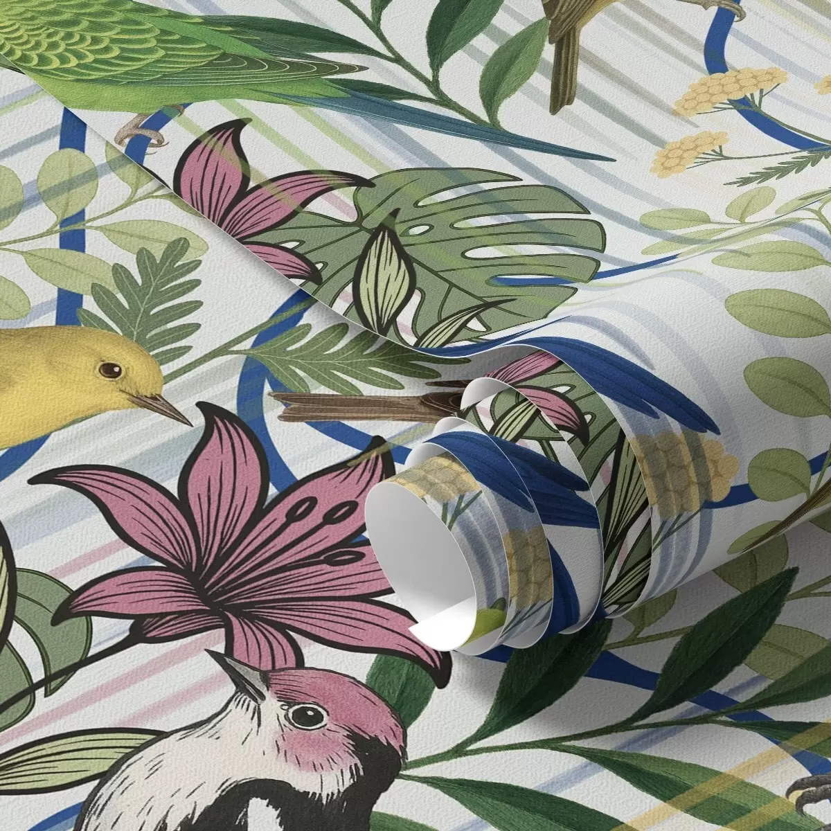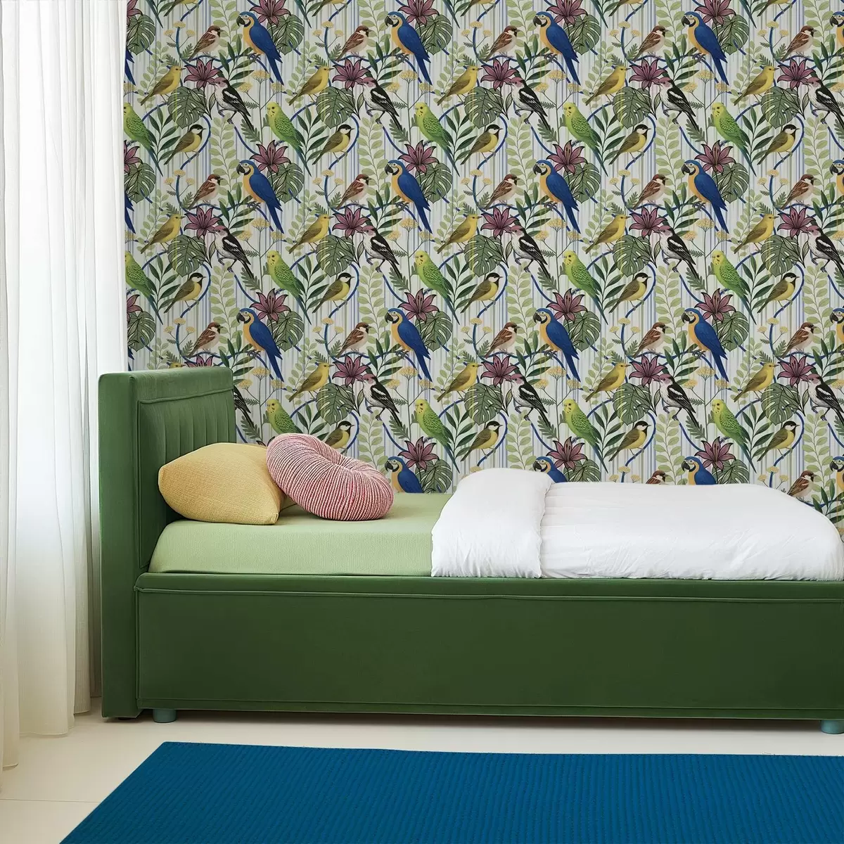 Tapete Leuchtende exotische Vögel inmitten tropischer Vegetation Nr. a00887