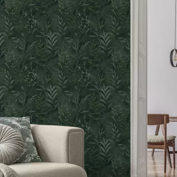 Tapete Dunkelgrüner Hintergrund mit durchscheinenden Blattzweigen Nr. a00888