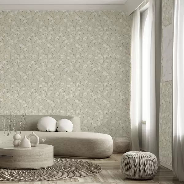 Tapete Helle Magnolien an schlanken beigen Zweigen Nr. a00890