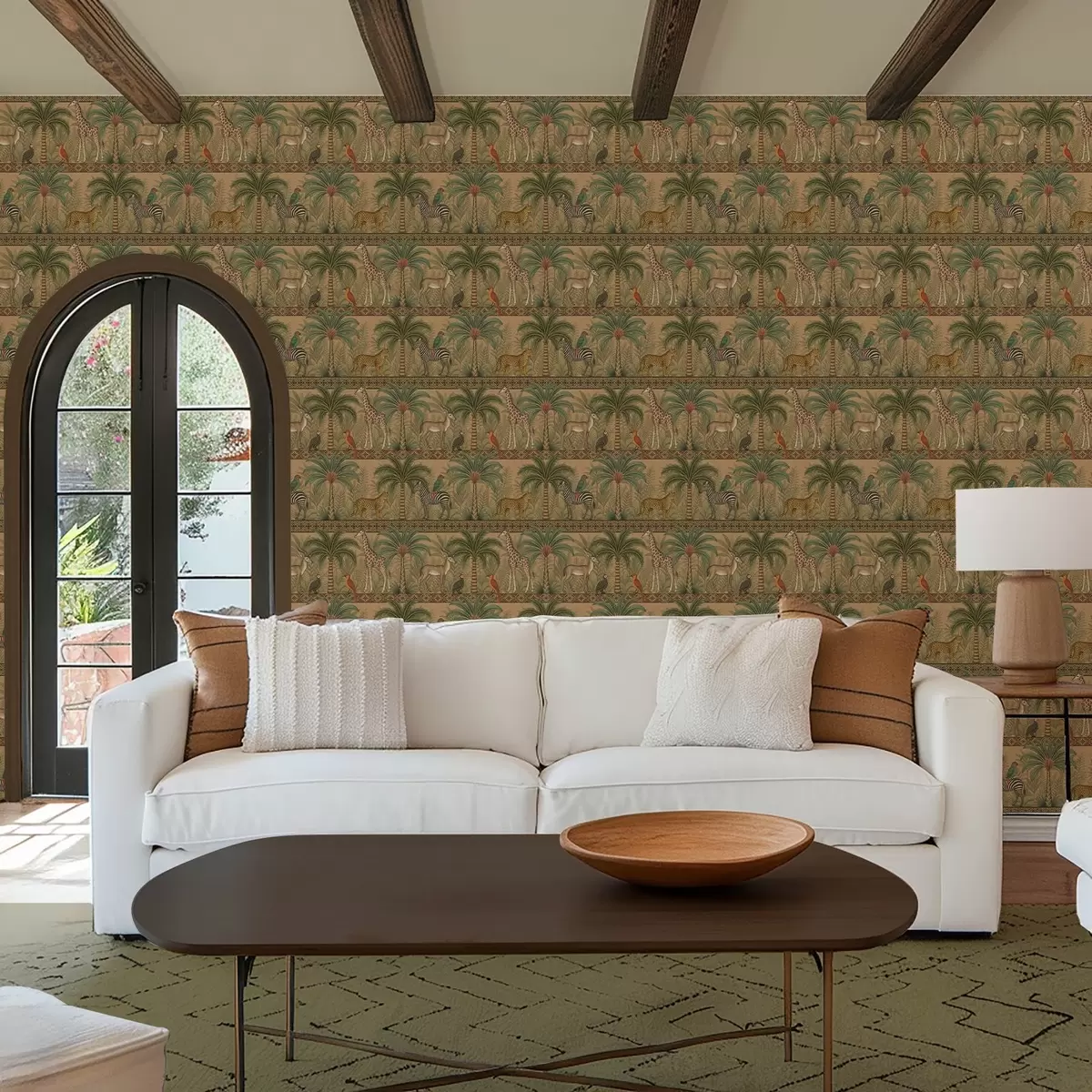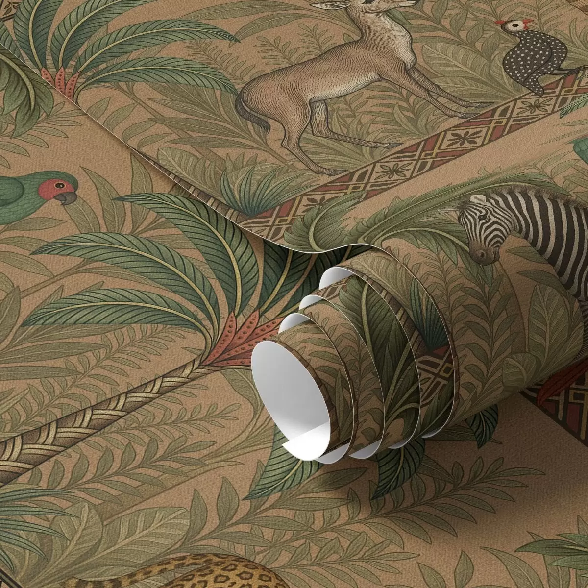 Tapete Dekorative Savannentiere zwischen Palmen und Bordüren Nr. a00898